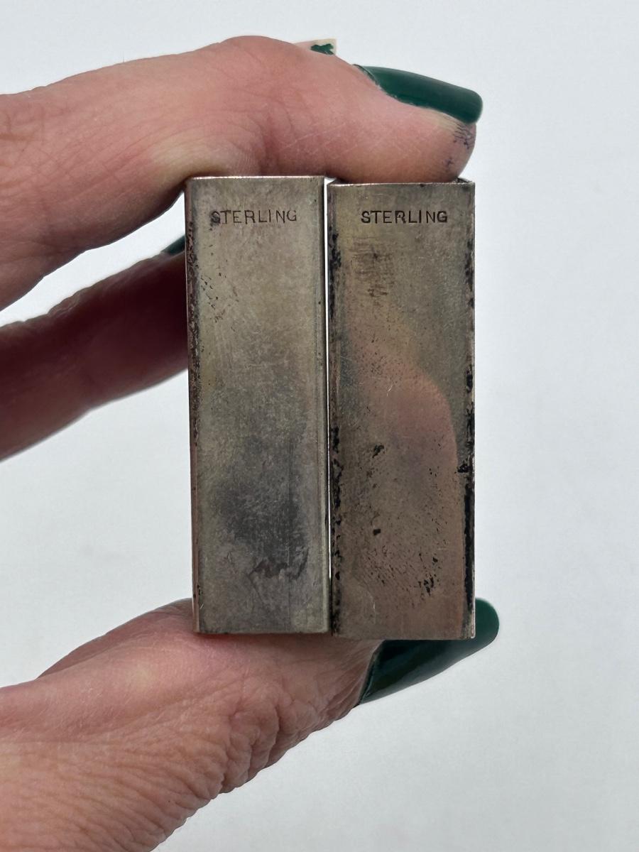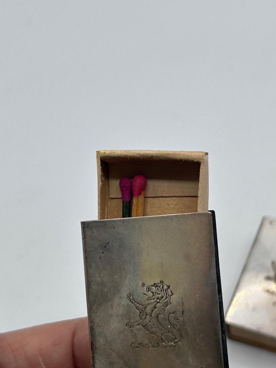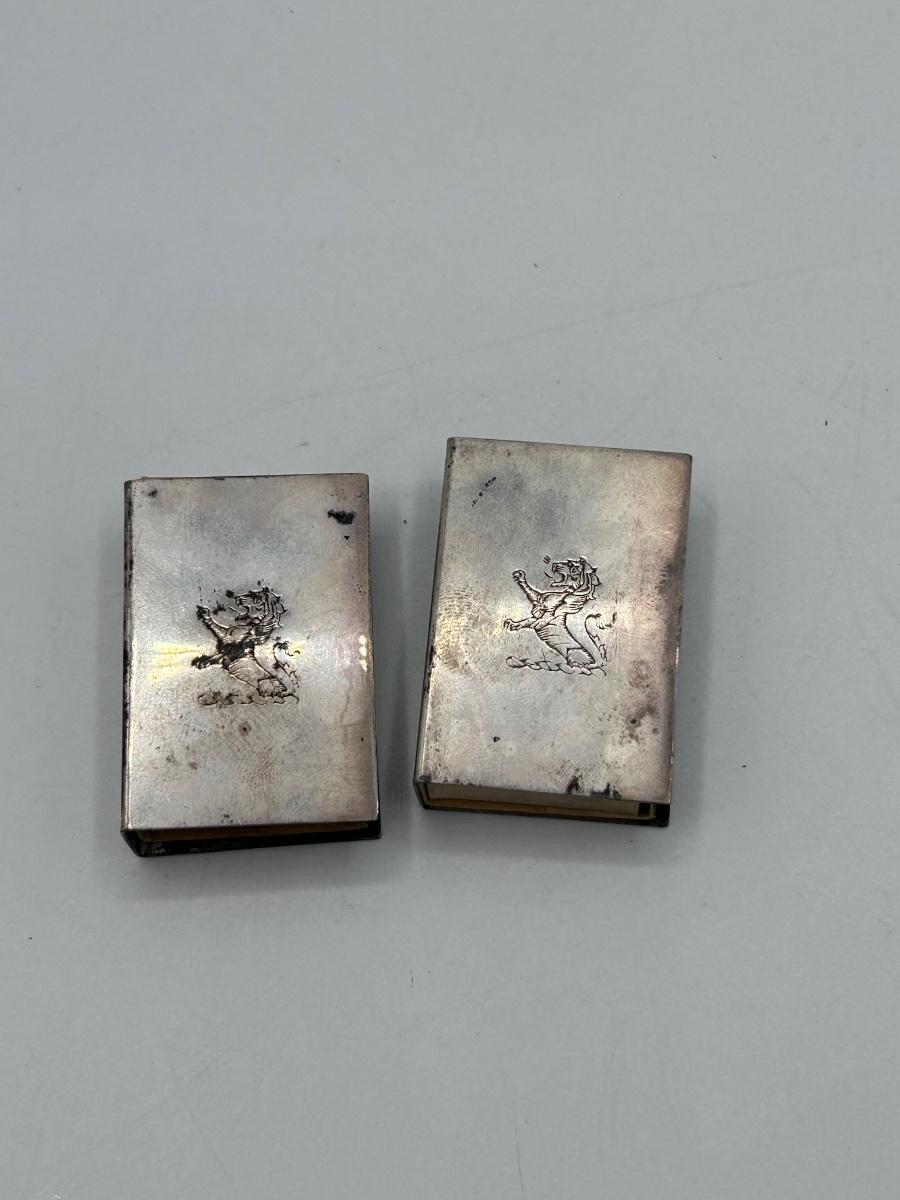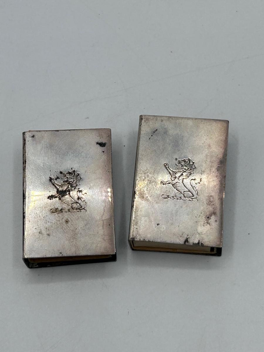 Pair of Vintage Sterling Silver Matchbox Matches Case with Stamped Lion Pattern Emblem