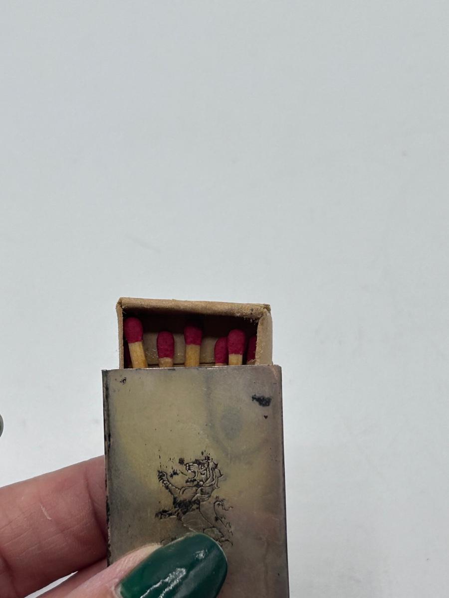 Pair of Vintage Sterling Silver Matchbox Matches Case with Stamped Lion Pattern Emblem. In good condition. Both have match boxes in them, but they are not full. Need to be cleaned a little. Stamped sterling on side.