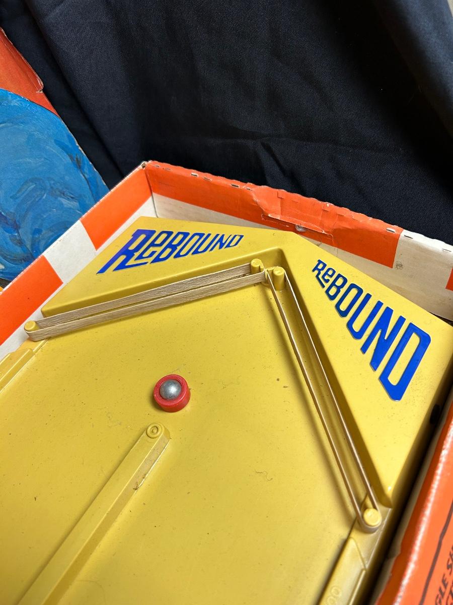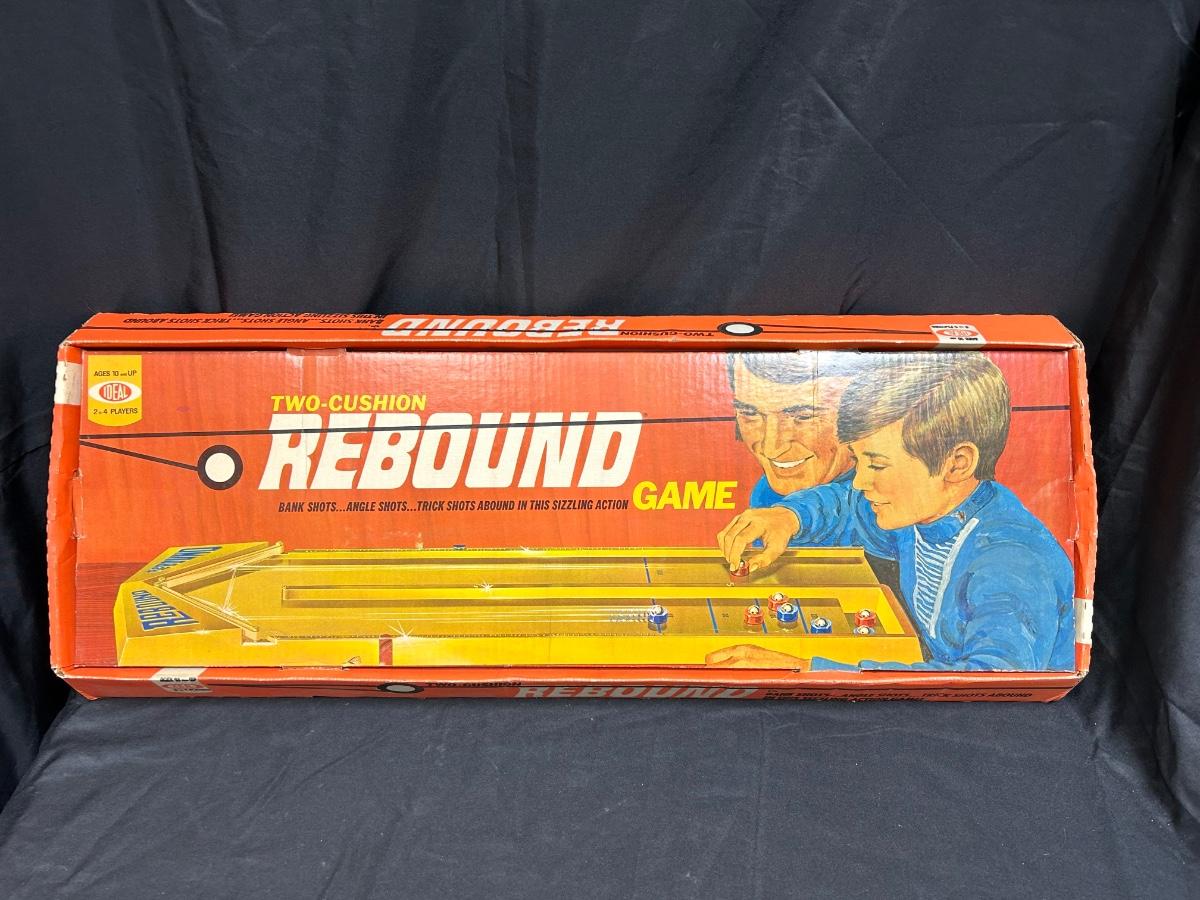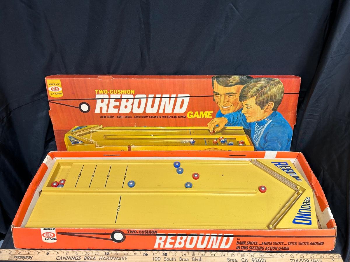 Vintage Rebound Two Cushion Tabletop Game from Ideal. In good vintage condition. Rubber bands at end still have some bounce but could probably use to be replaced.
