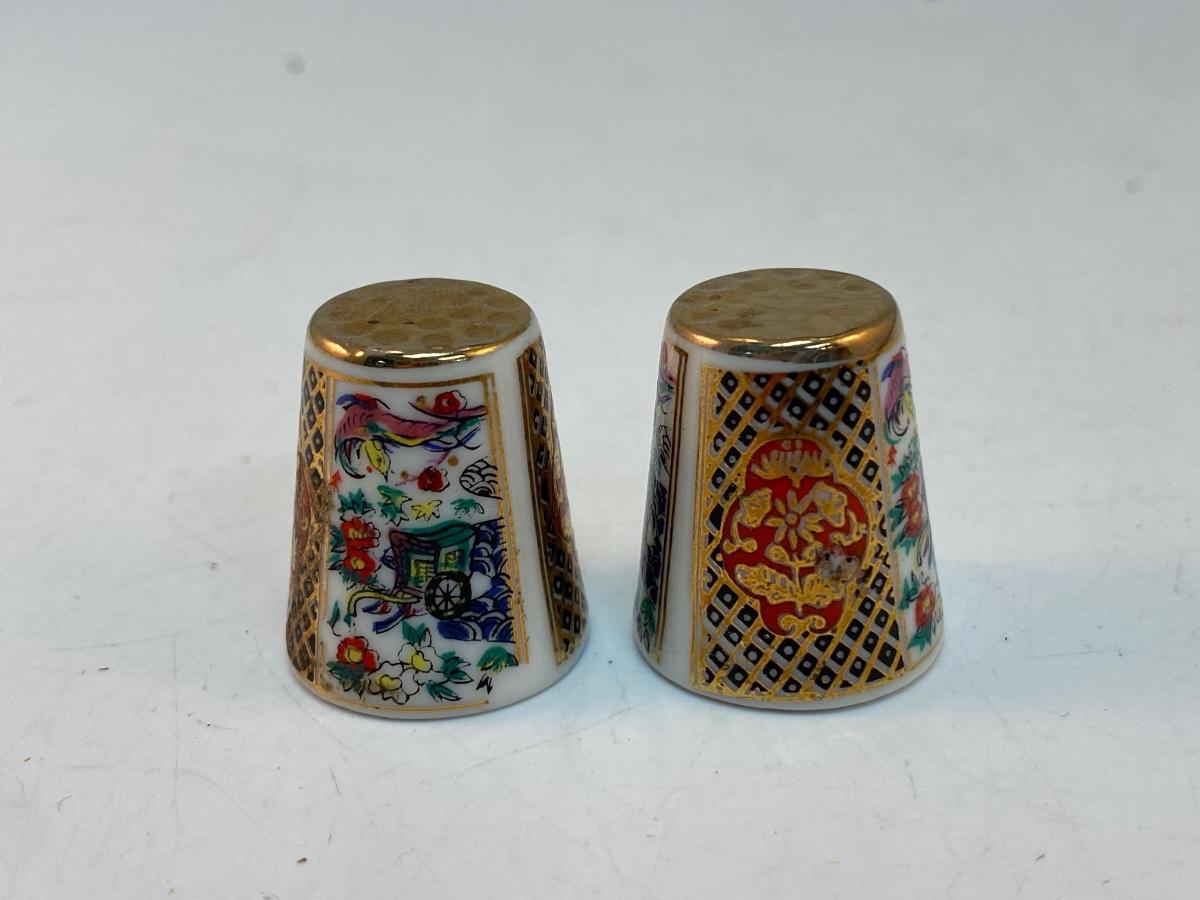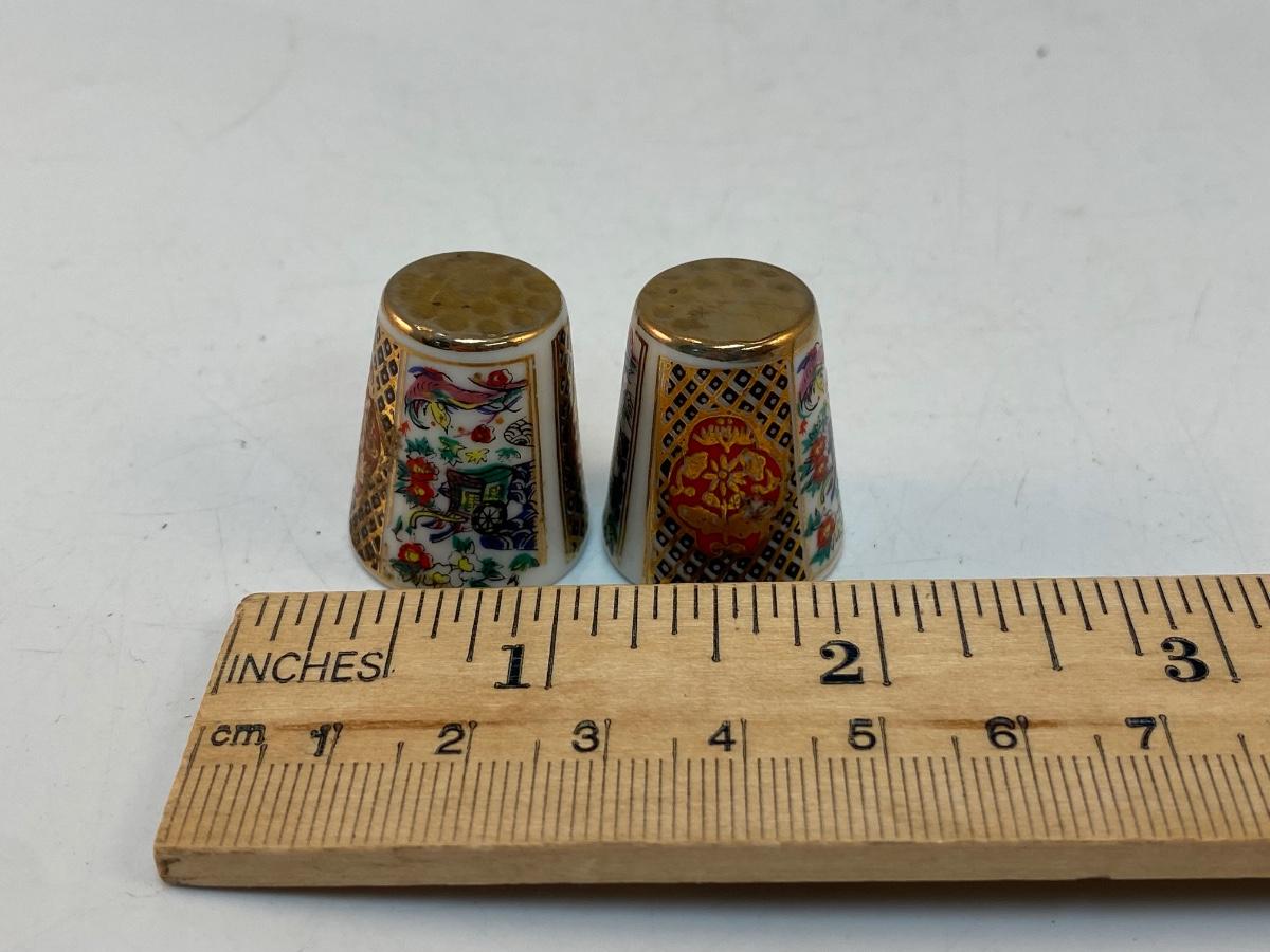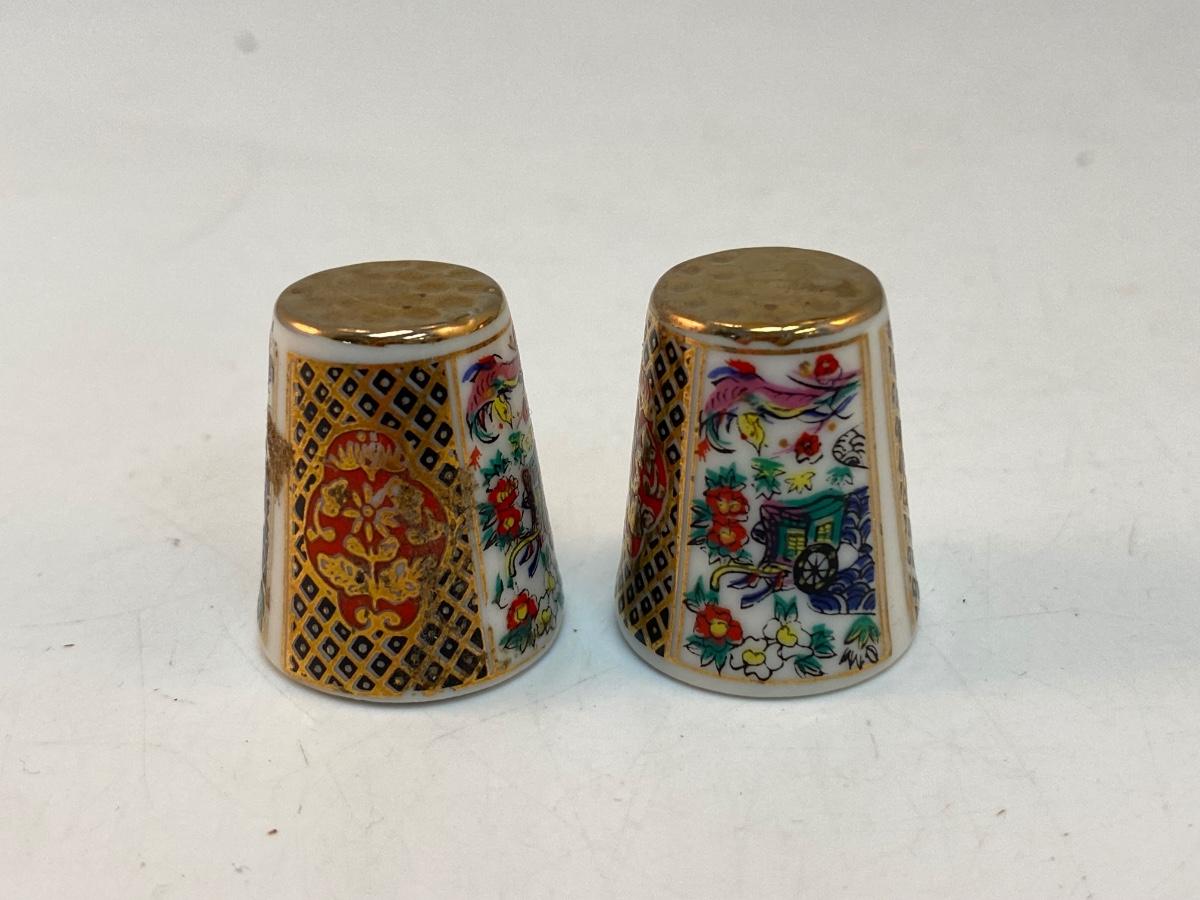 Pair of Ceramic Made in Japan Imari Style Sewing Thimbles
