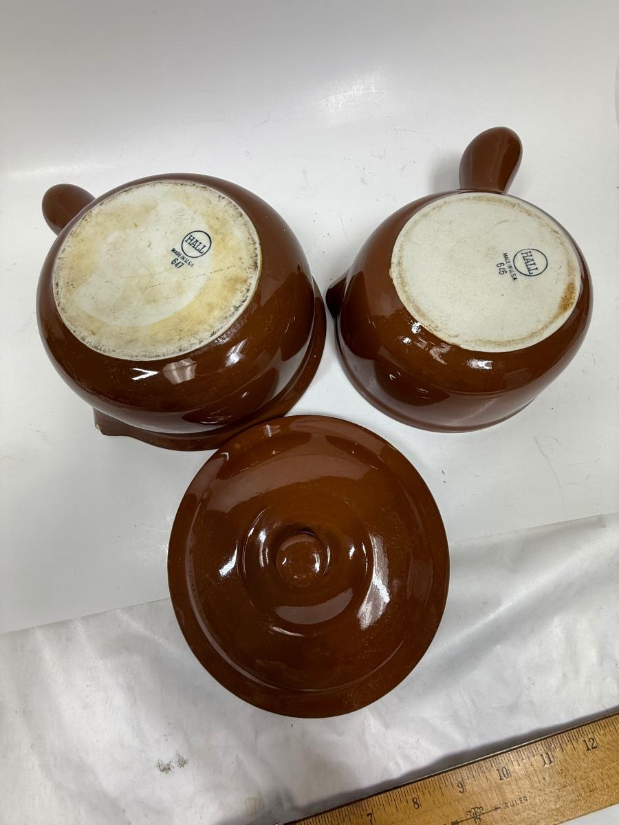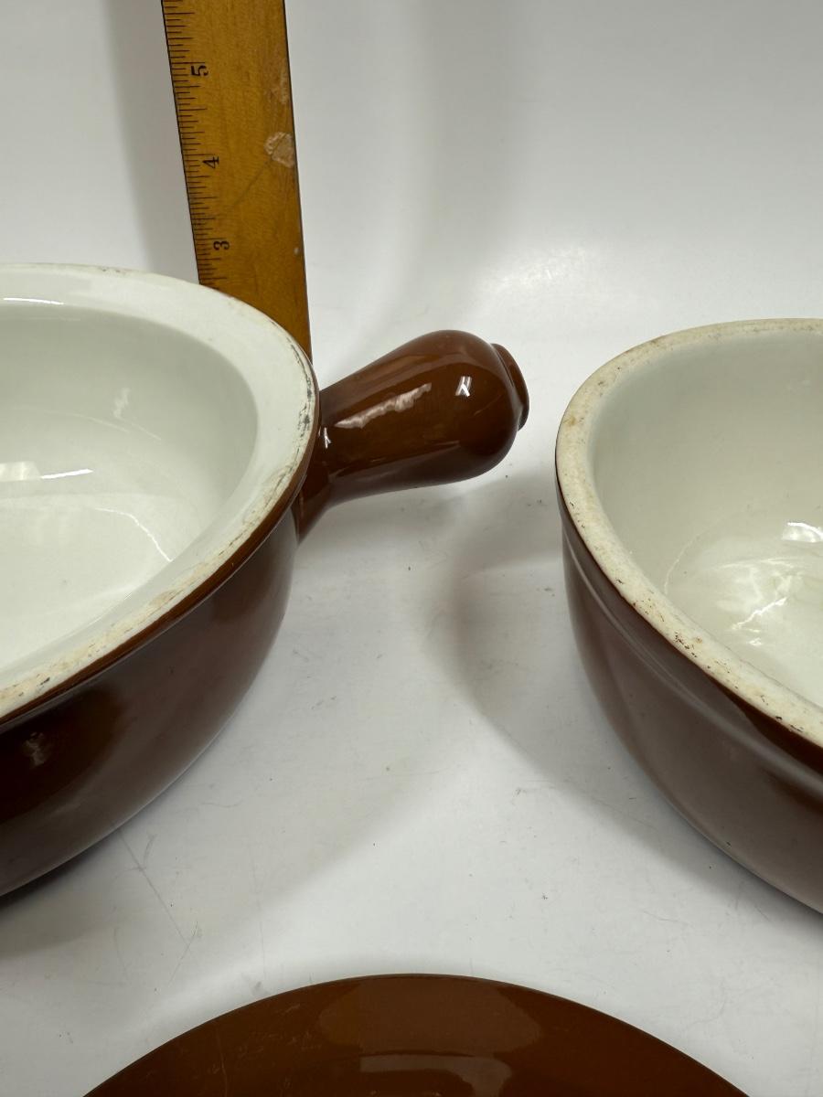 Pair Of Hall French Onion Soup Bowls With 1 Lid