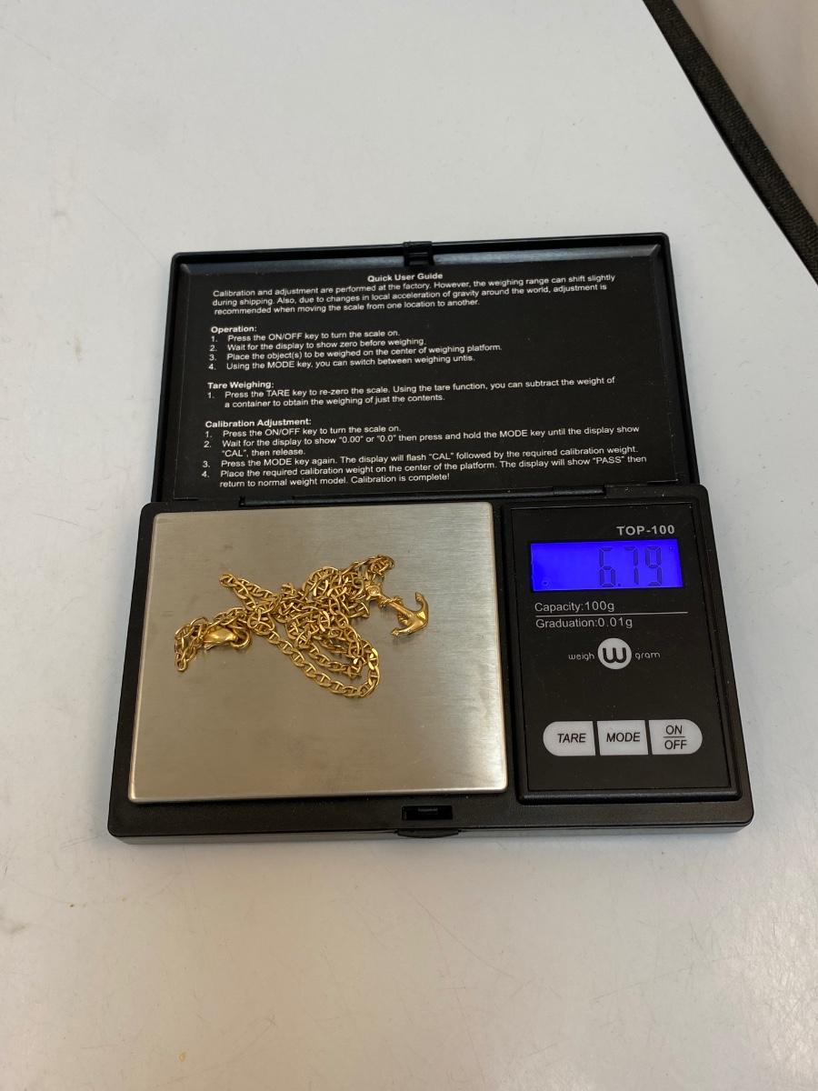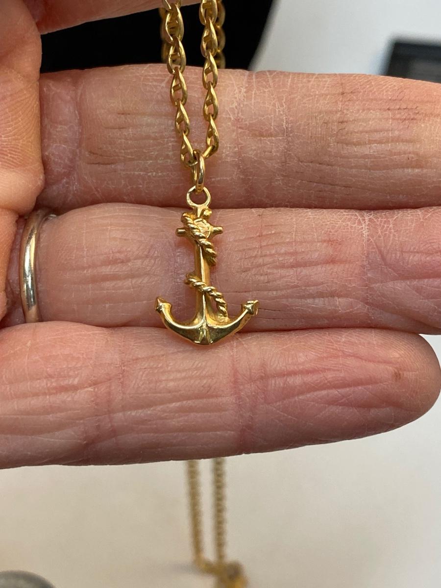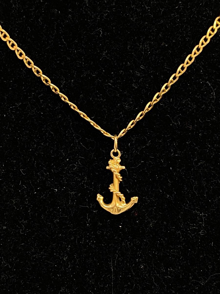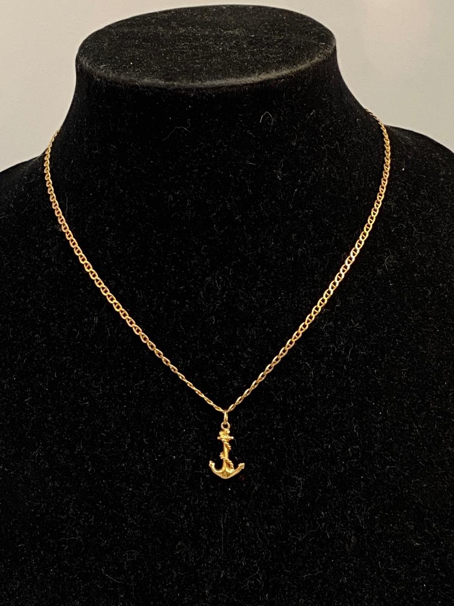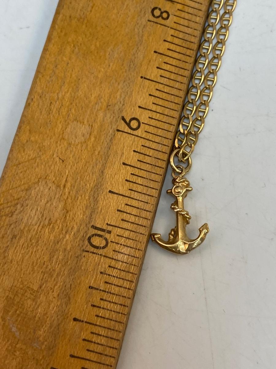 14k Yellow Gold Anchor Charm Pendant Necklace. In good condition. 6.79g tw.
