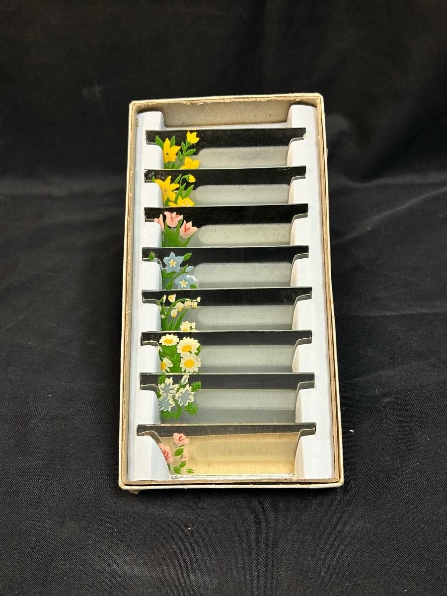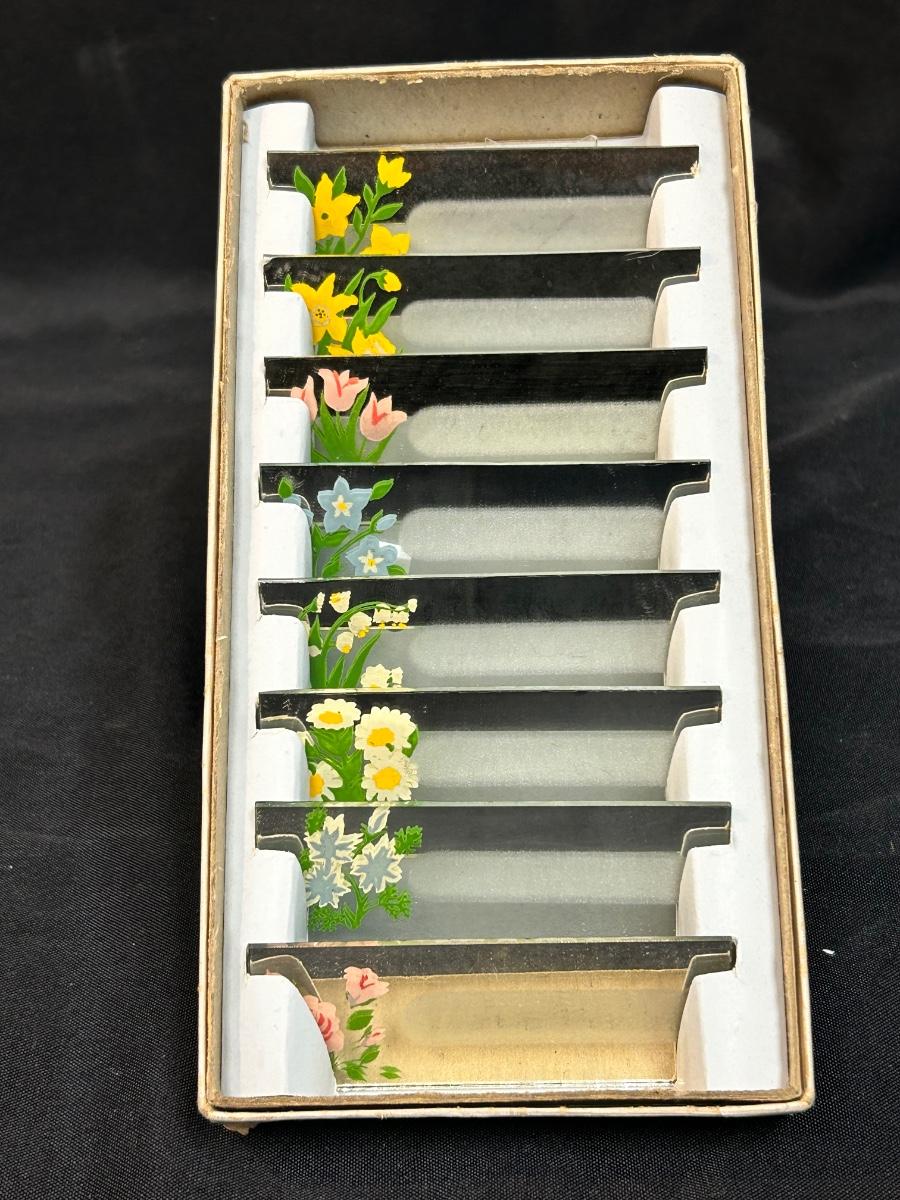Vintage Set of Flower Painted Mirrored Table Setting Place Cards
