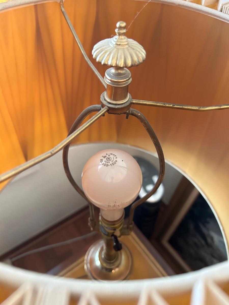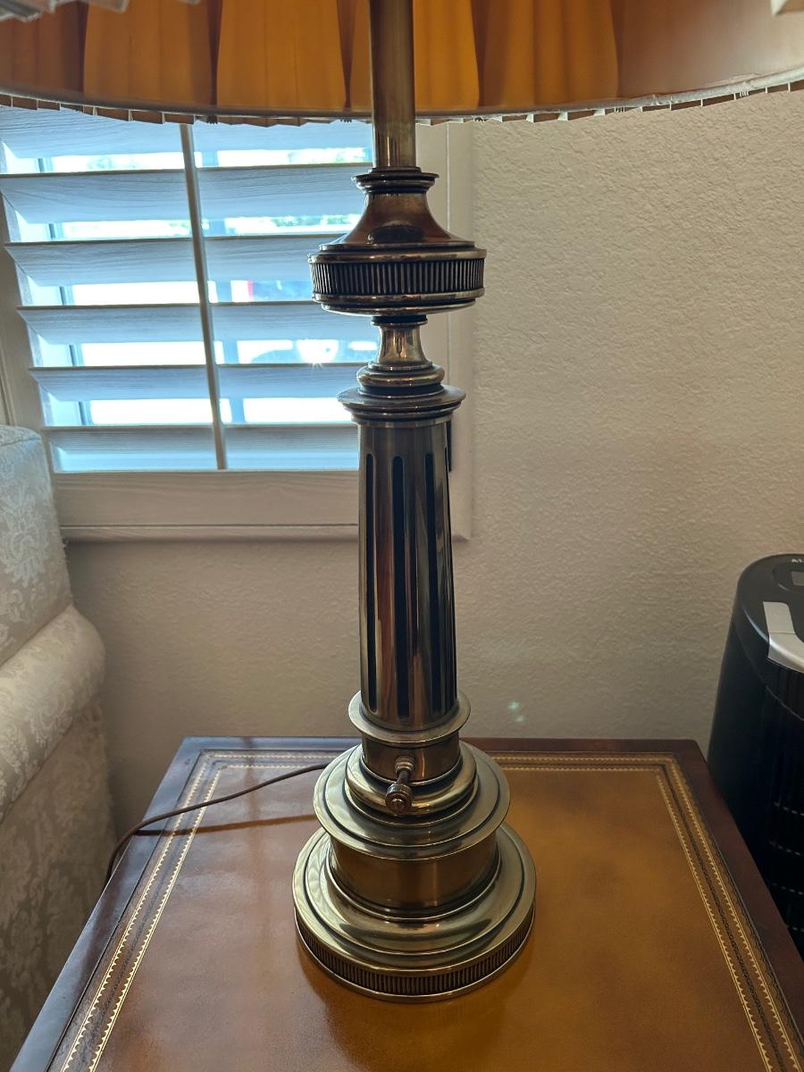 Vintage Brass Base Table Lamp with Shade. Works. In good condition.
