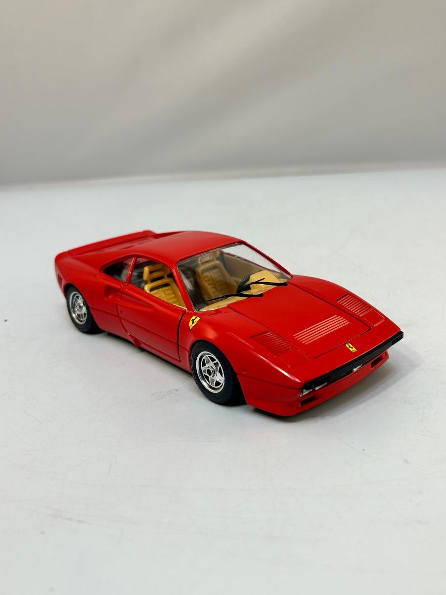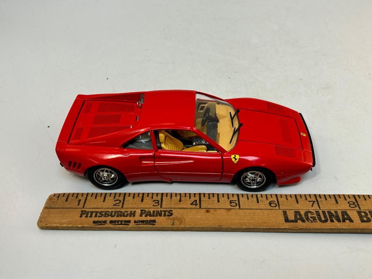 Burago Red 1984 Ferrari GTO 1/24 Scale Model Toy Die Cast Car Auto. In good condition. Doors, hood and trunk open. About 7" size. No broken pieces noticed.