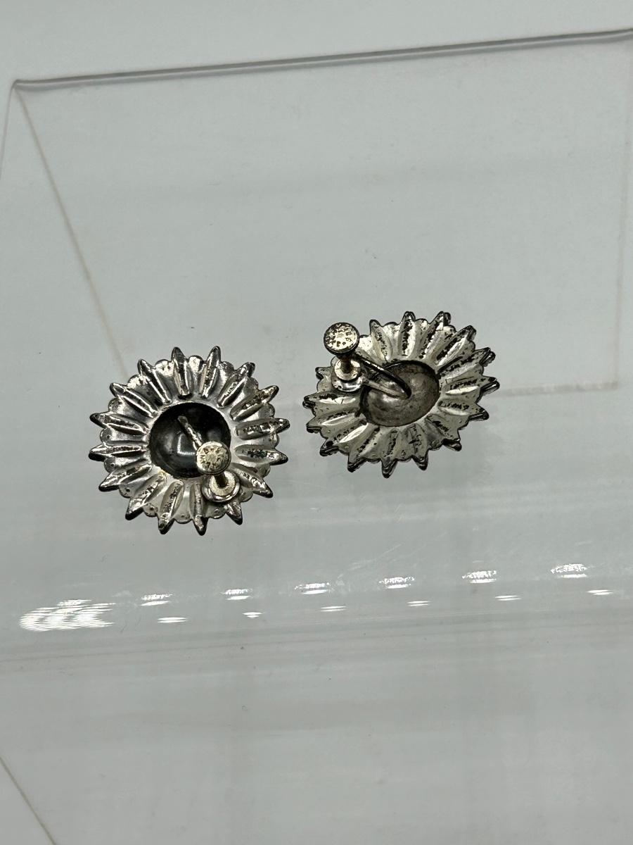 Vintage Southwestern Starburst Flower Sterling and Turquoise Screw Back Earrings