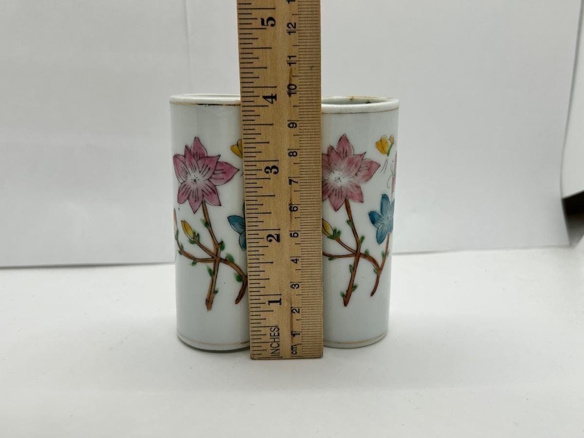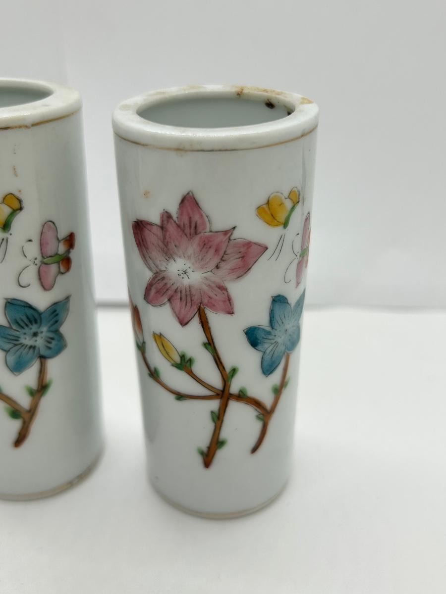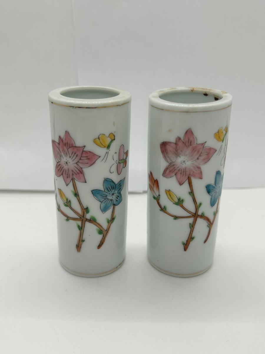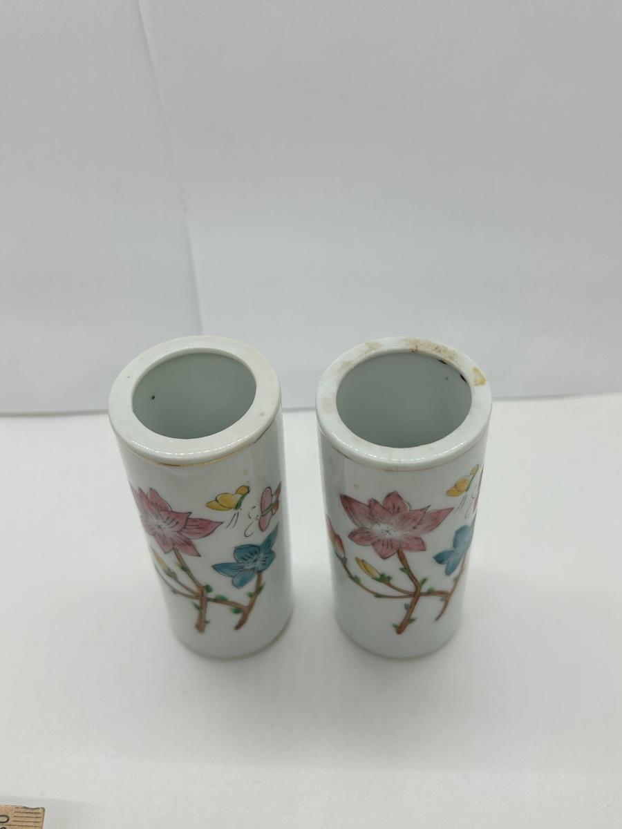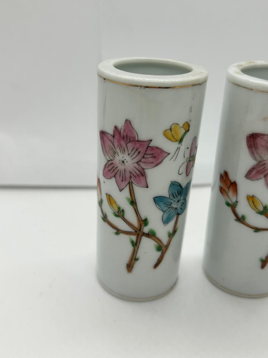 Matching Pair of Asian Style Floral Design Porcelain Ceramic Bud Vases Candlestick Holders
