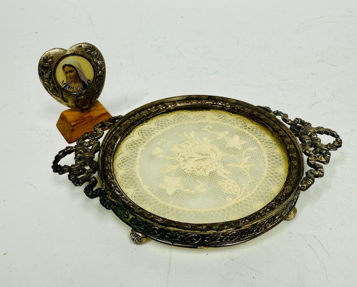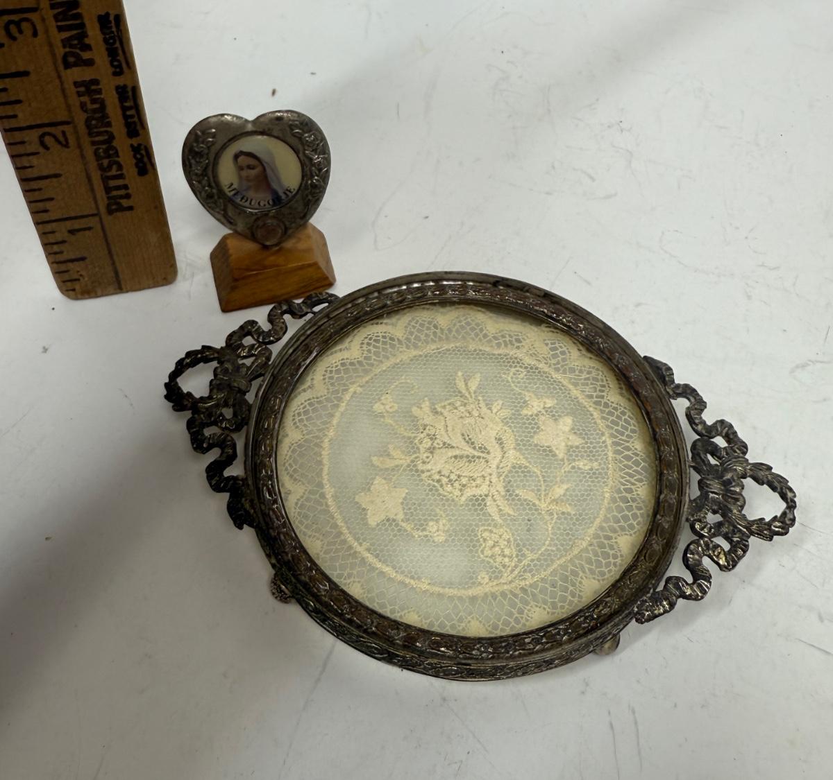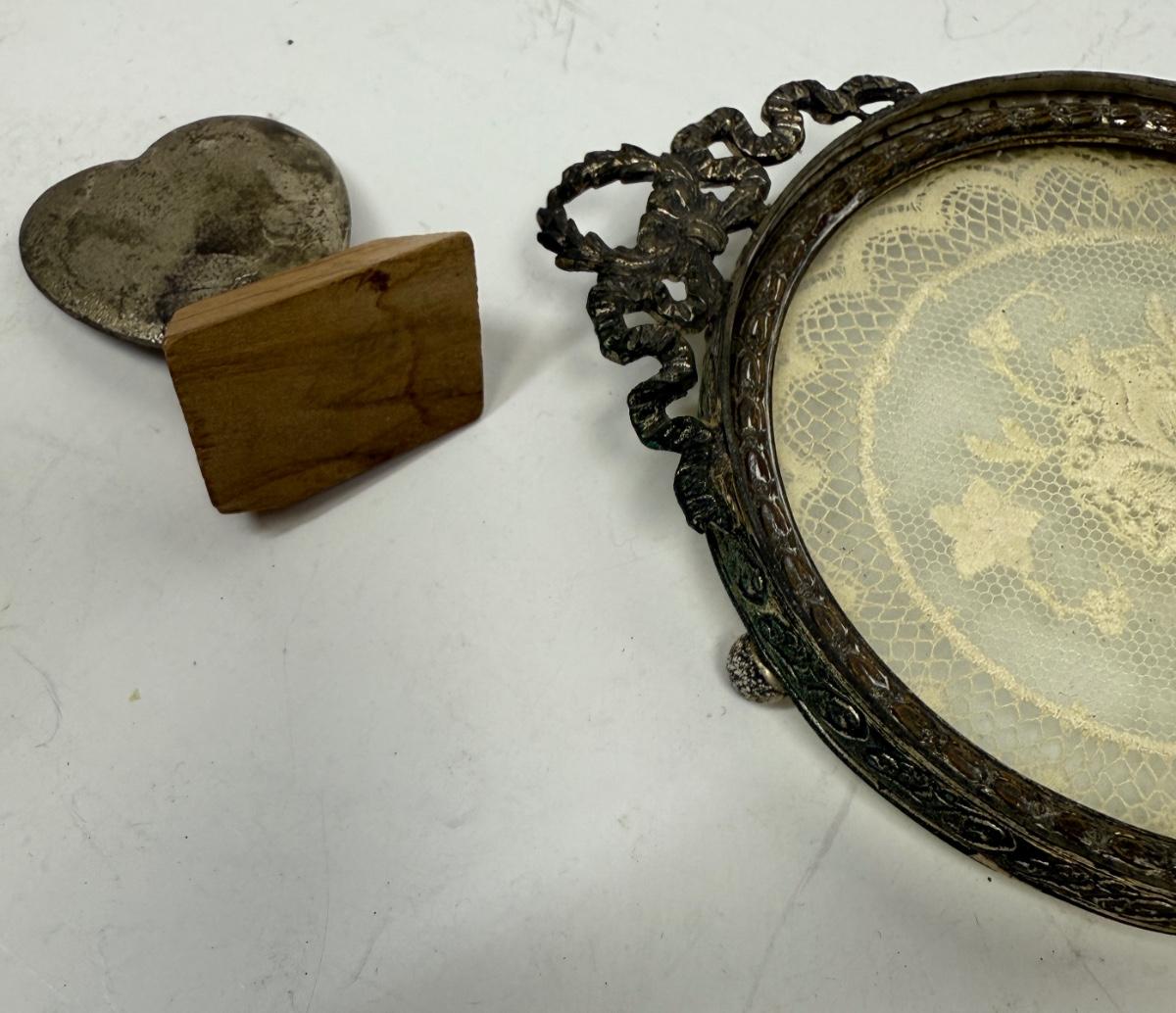 Antique Doily Glass and Brass Vanity Small Round Tray