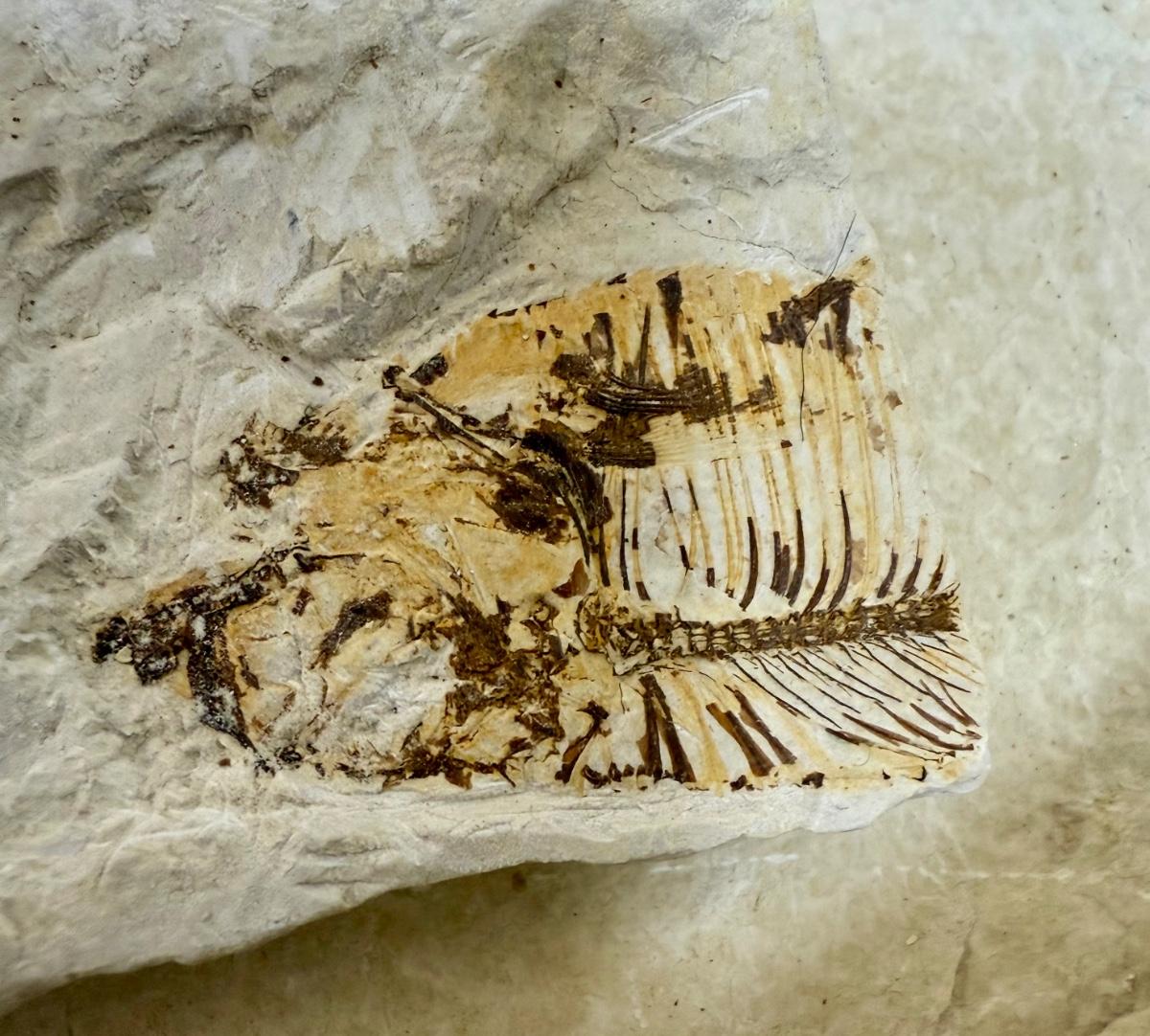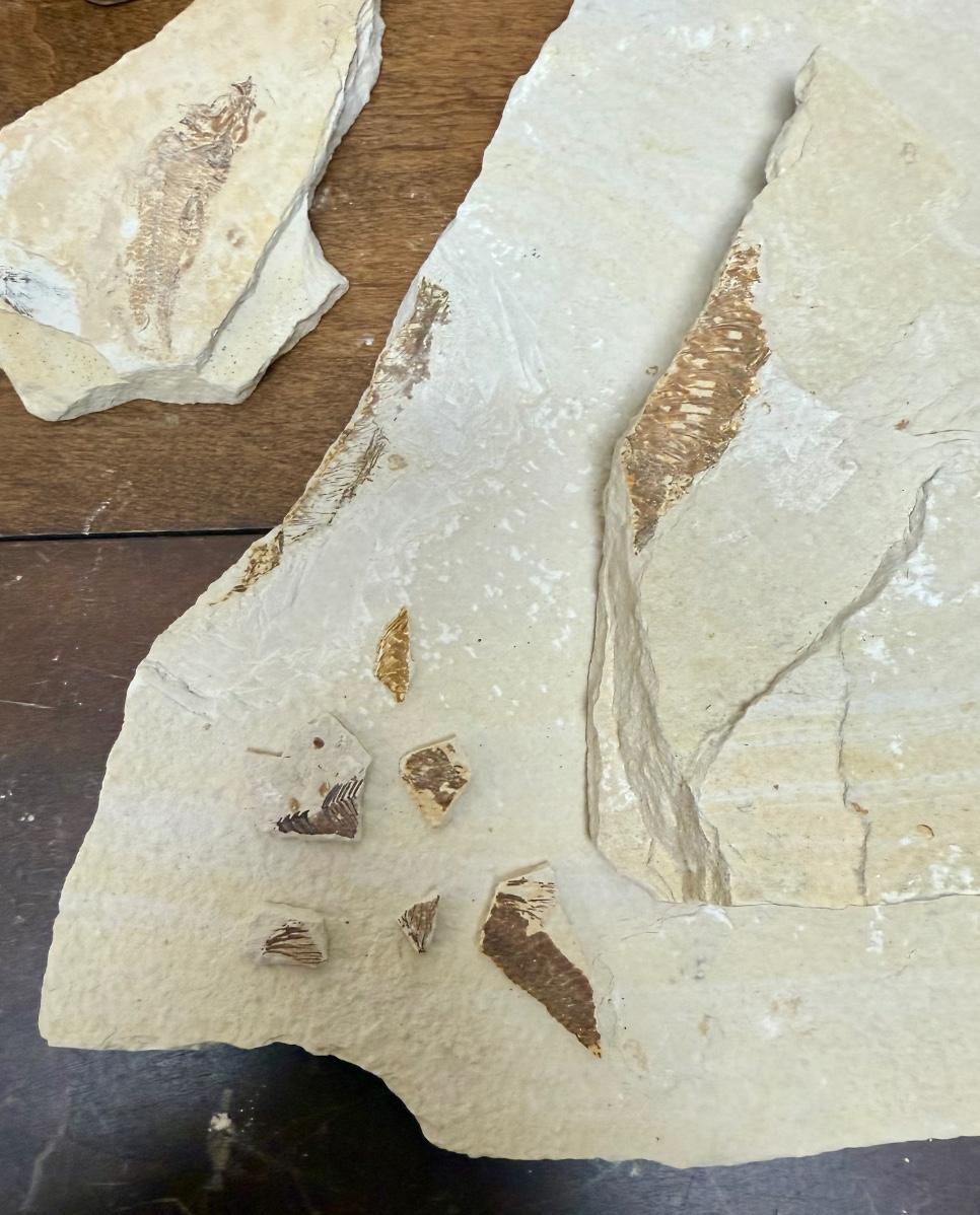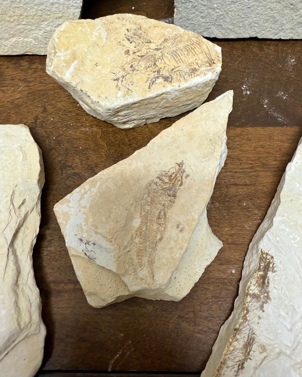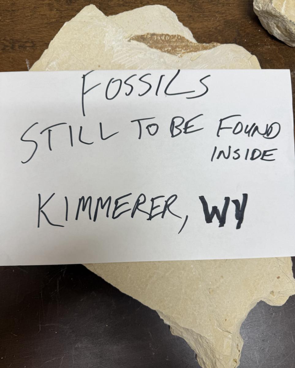Collected at a commercial quarry around the town of Kemmerer, Wyoming. Approximately 50 million years ago during the Eocene period, three huge lakes covered parts of Southwest Wyoming. The fine grained sediments that collected at the bottom of these lakes preserved the fossils of millions of fish, plants, insects, reptiles and other flora and fauna. These sediments which has since turned to stone are now part of the Green River Formation.