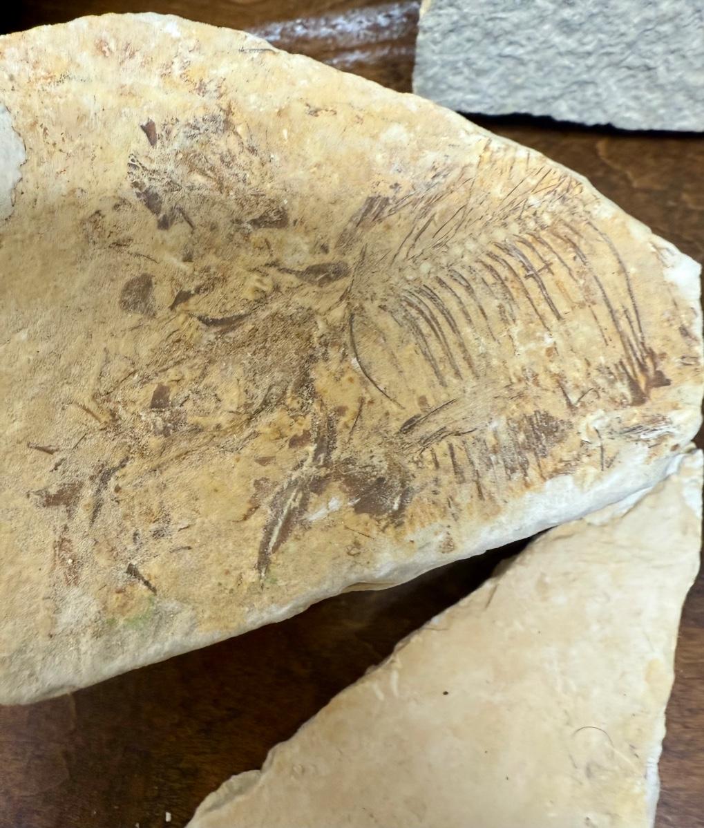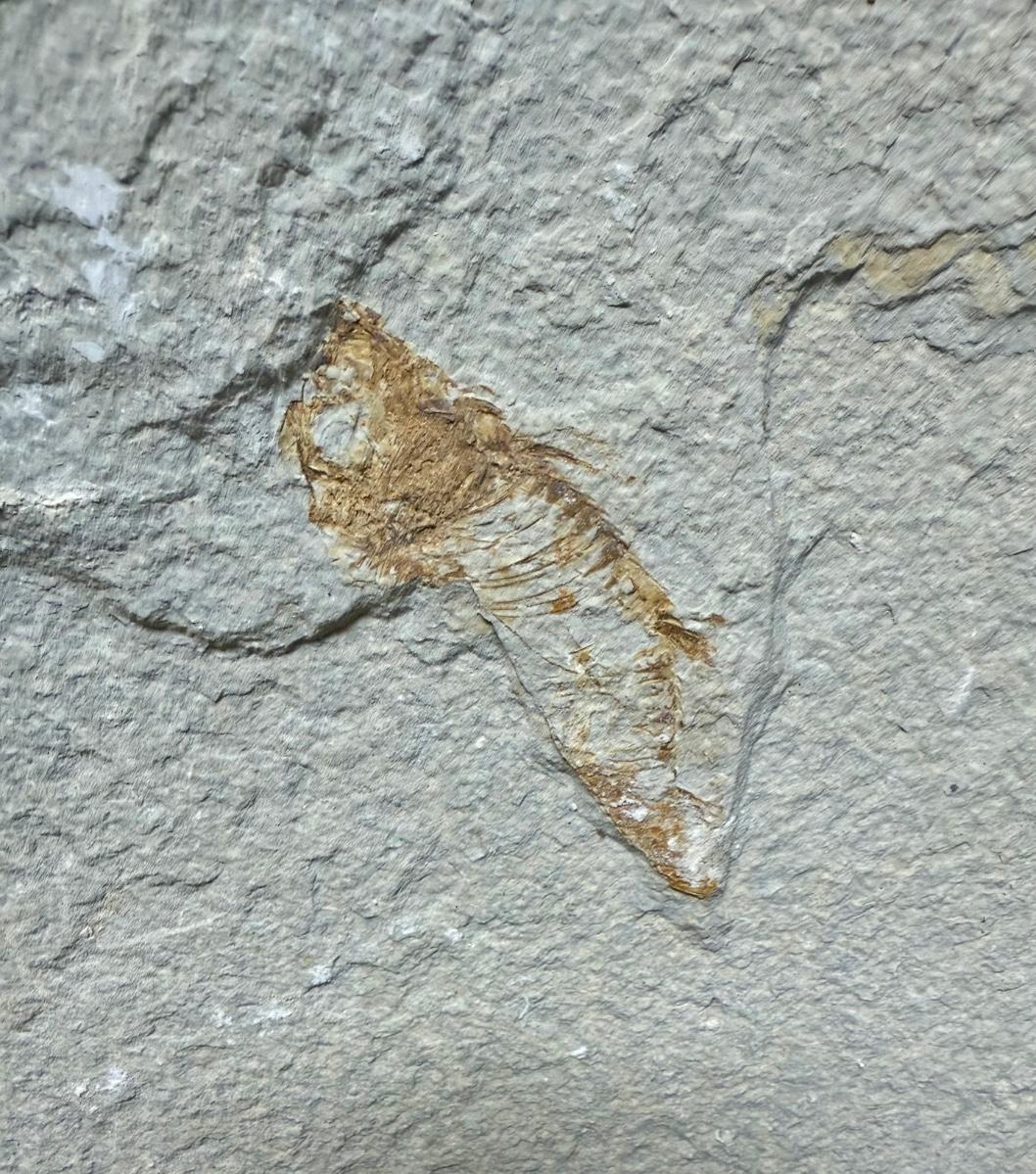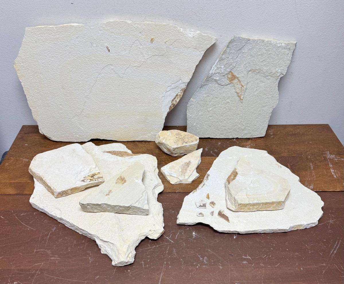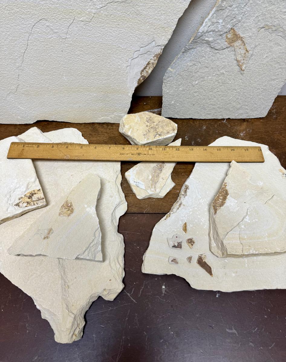 Collected at a commercial quarry around the town of Kemmerer, Wyoming. Approximately 50 million years ago during the Eocene period, three huge lakes covered parts of Southwest Wyoming. The fine grained sediments that collected at the bottom of these lakes preserved the fossils of millions of fish, plants, insects, reptiles and other flora and fauna. These sediments which has since turned to stone are now part of the Green River Formation.