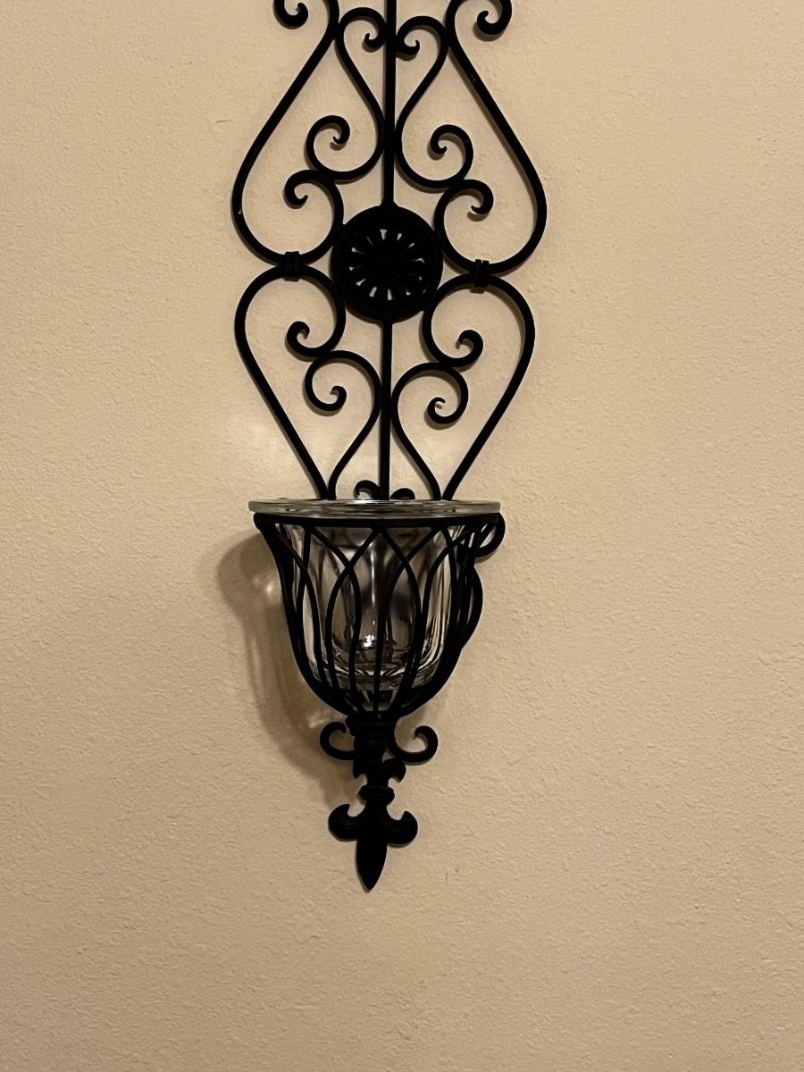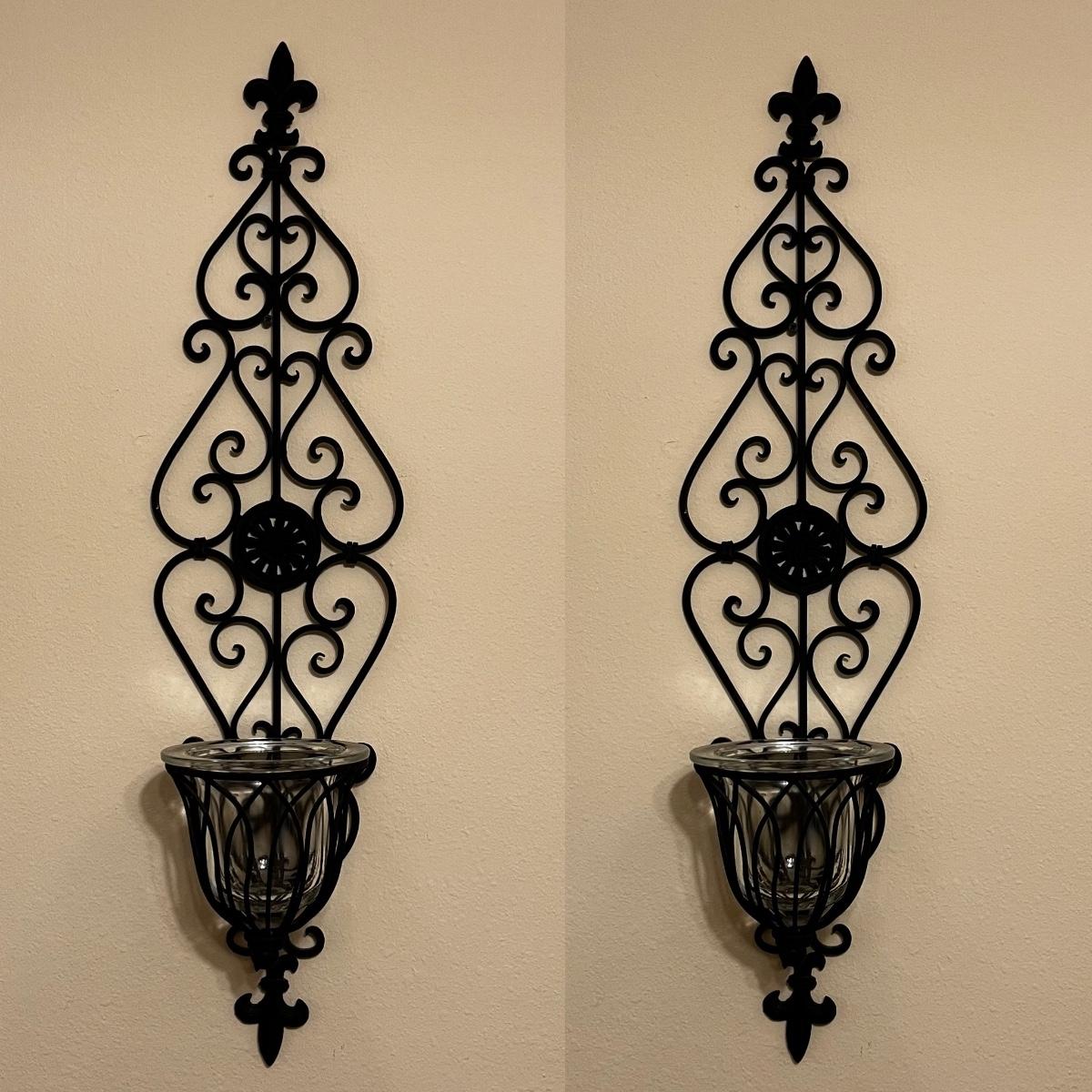 Pair (2) ~ Black Fleur-De-Lis Metal Wall Sconces