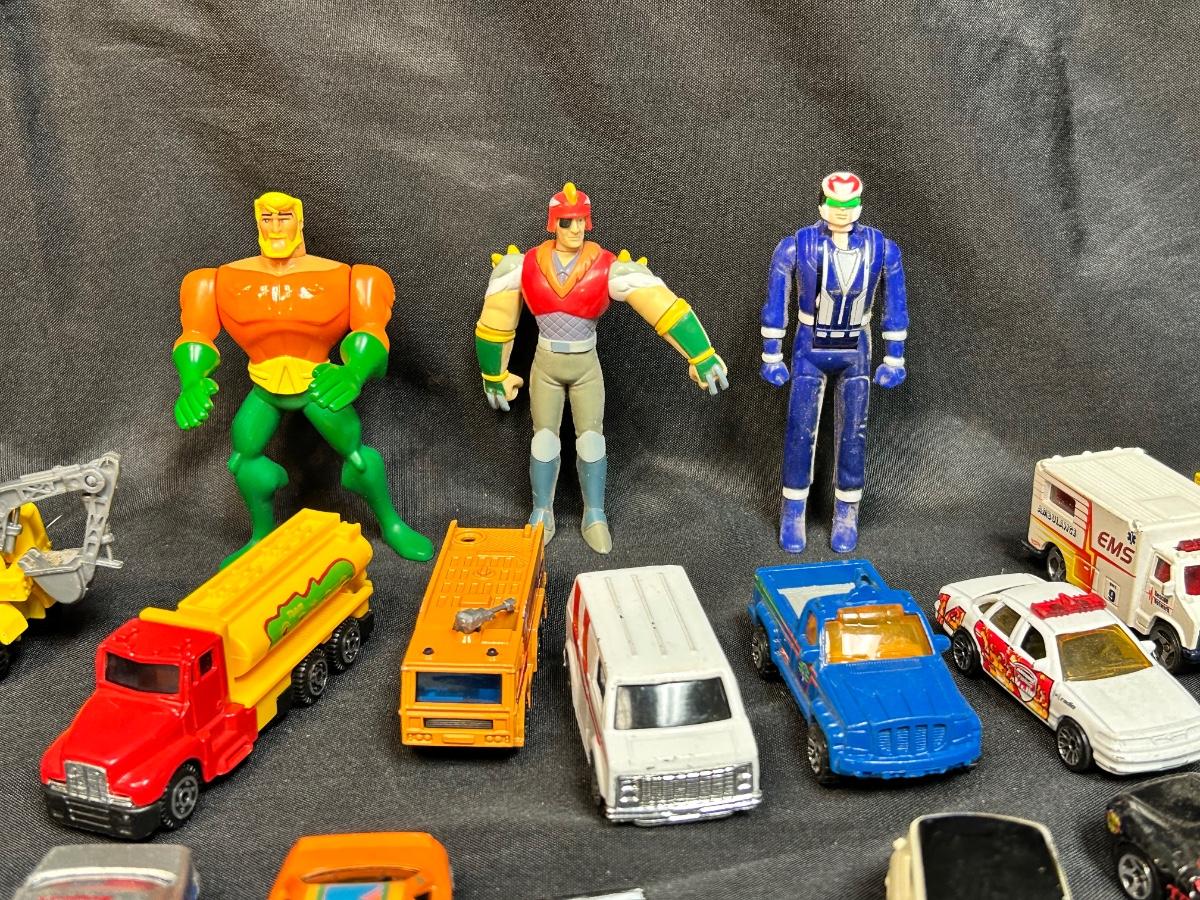 Mixed Lot of Die Cast Cars and Small Action Figure Kids Toys