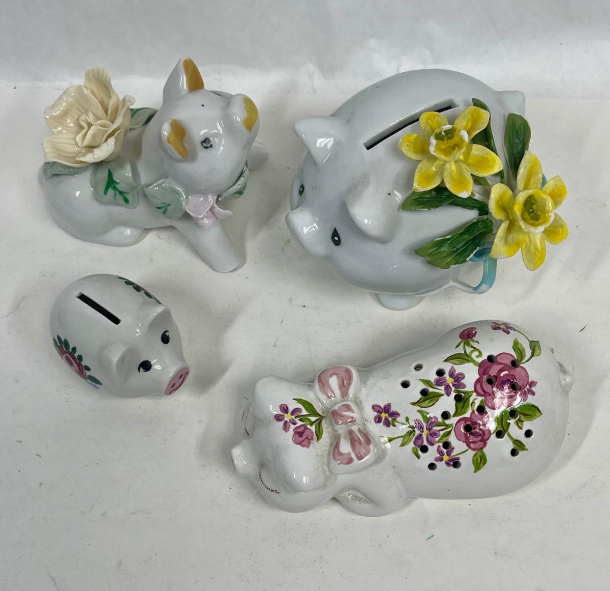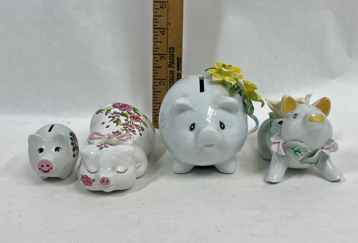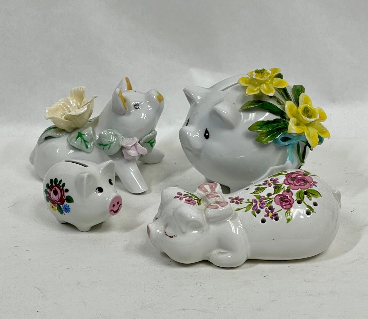 Pig Figurine, Potpourri Pig, and Piggy Banks Flower Decorated Ceramic