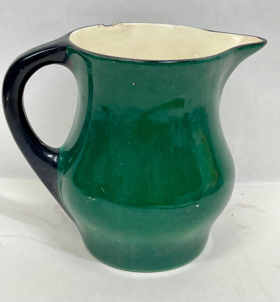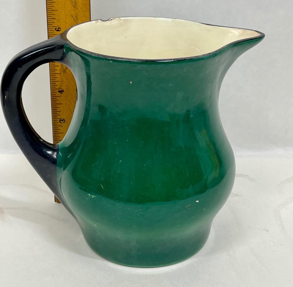 Ditmar Urbach Hand Painted Green & Black Pitcher made in Czechoslovakia