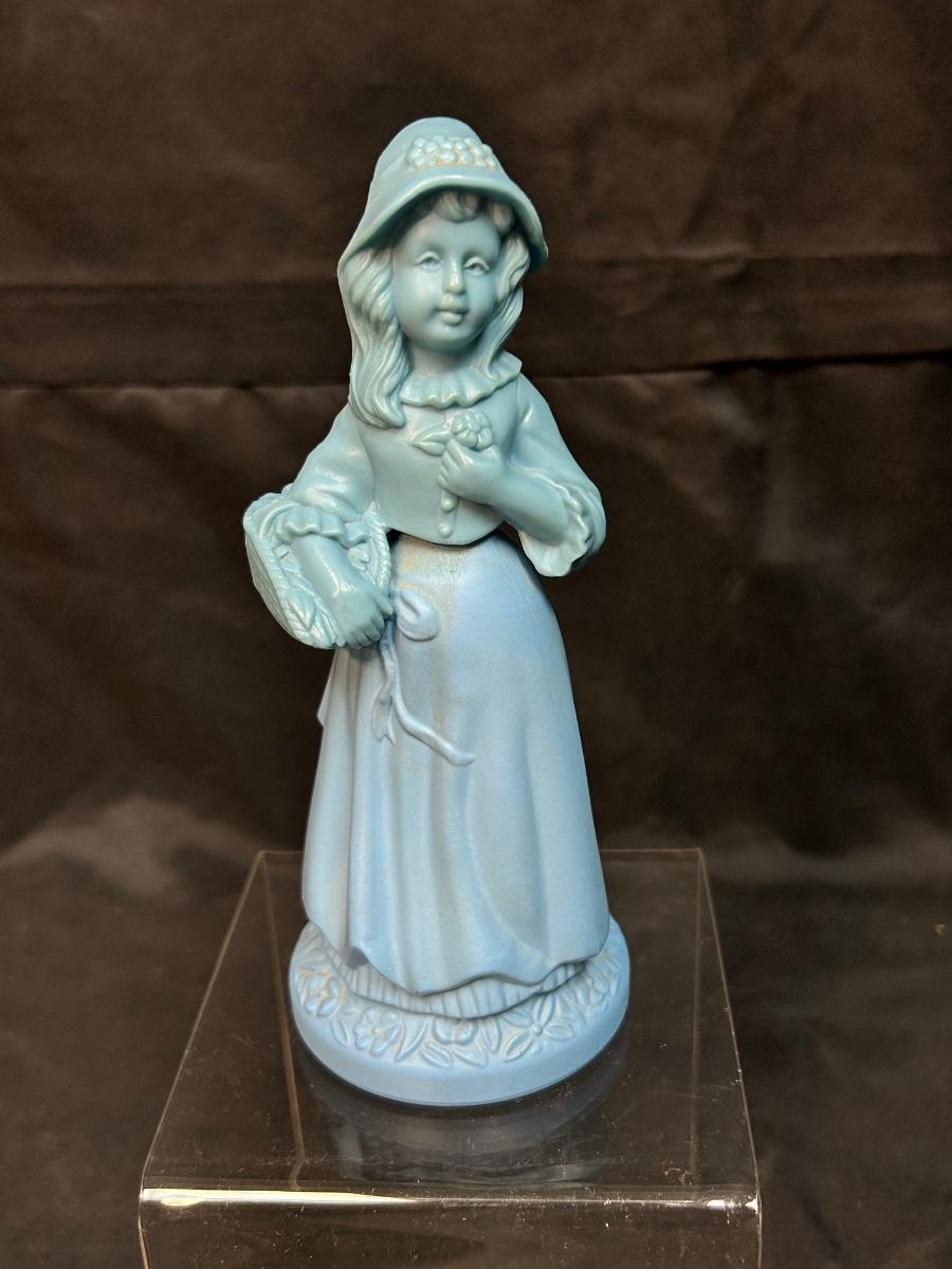 Vintage AVON Little Girl Blue Brocade Cologne Figurine Bottle Partially Full
