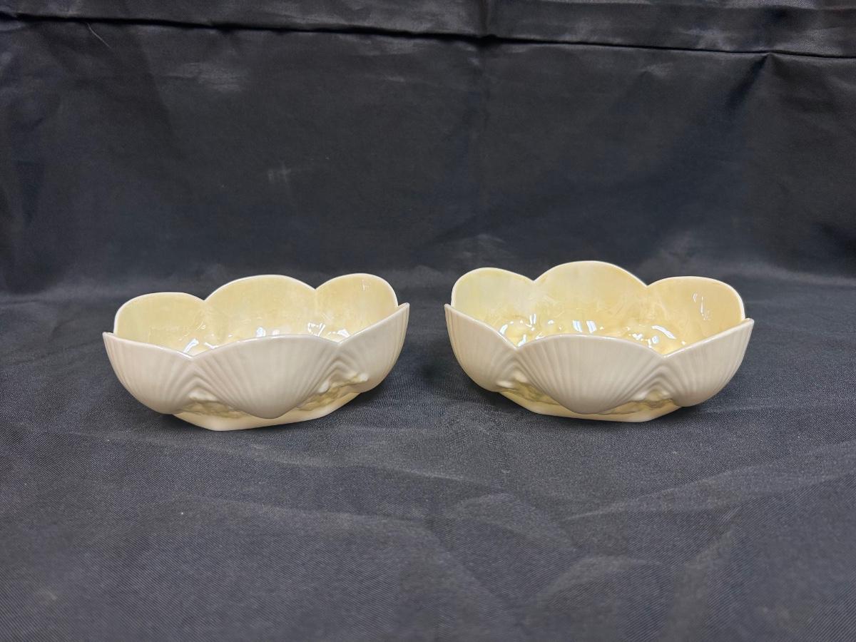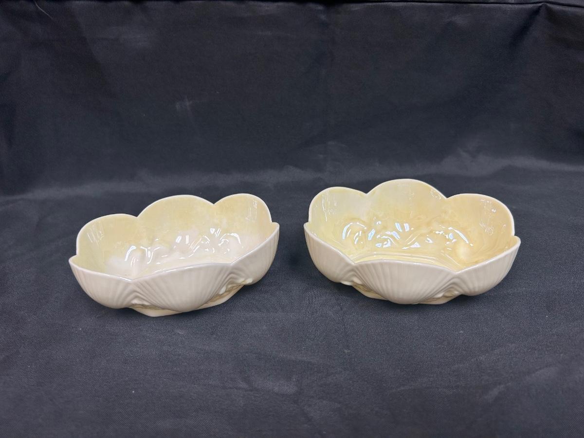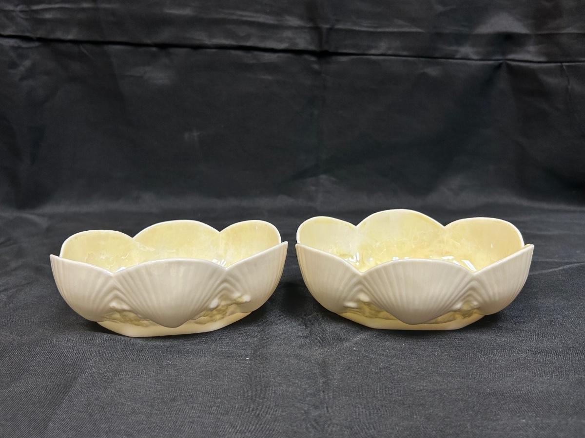 Pair of Vintage Belleek Neptune Scallop Shell Oval Sugar Candy Nut Bowls
