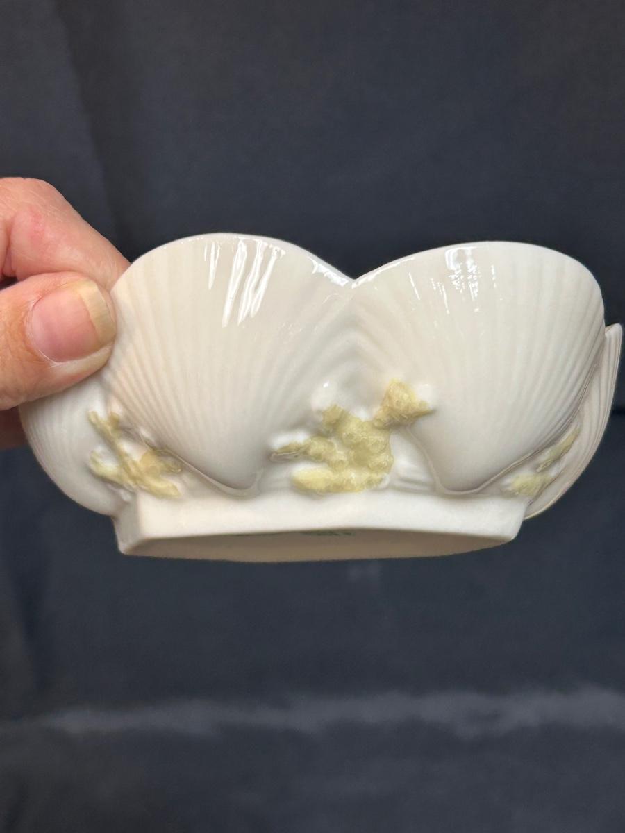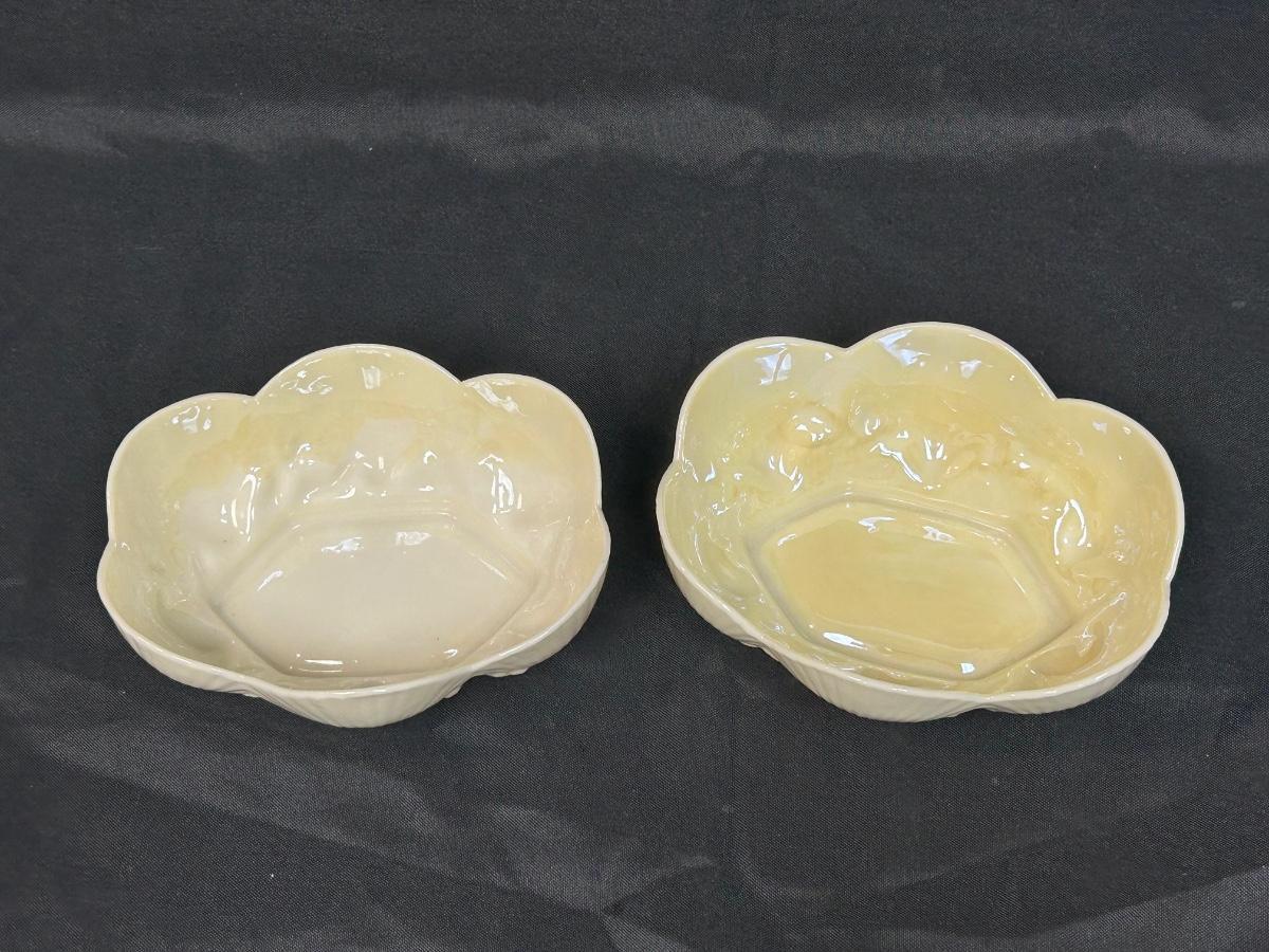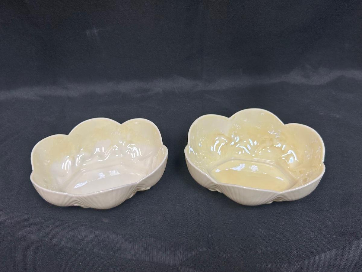 Pair of Vintage Belleek Neptune Scallop Shell Oval Sugar Candy Nut Bowls