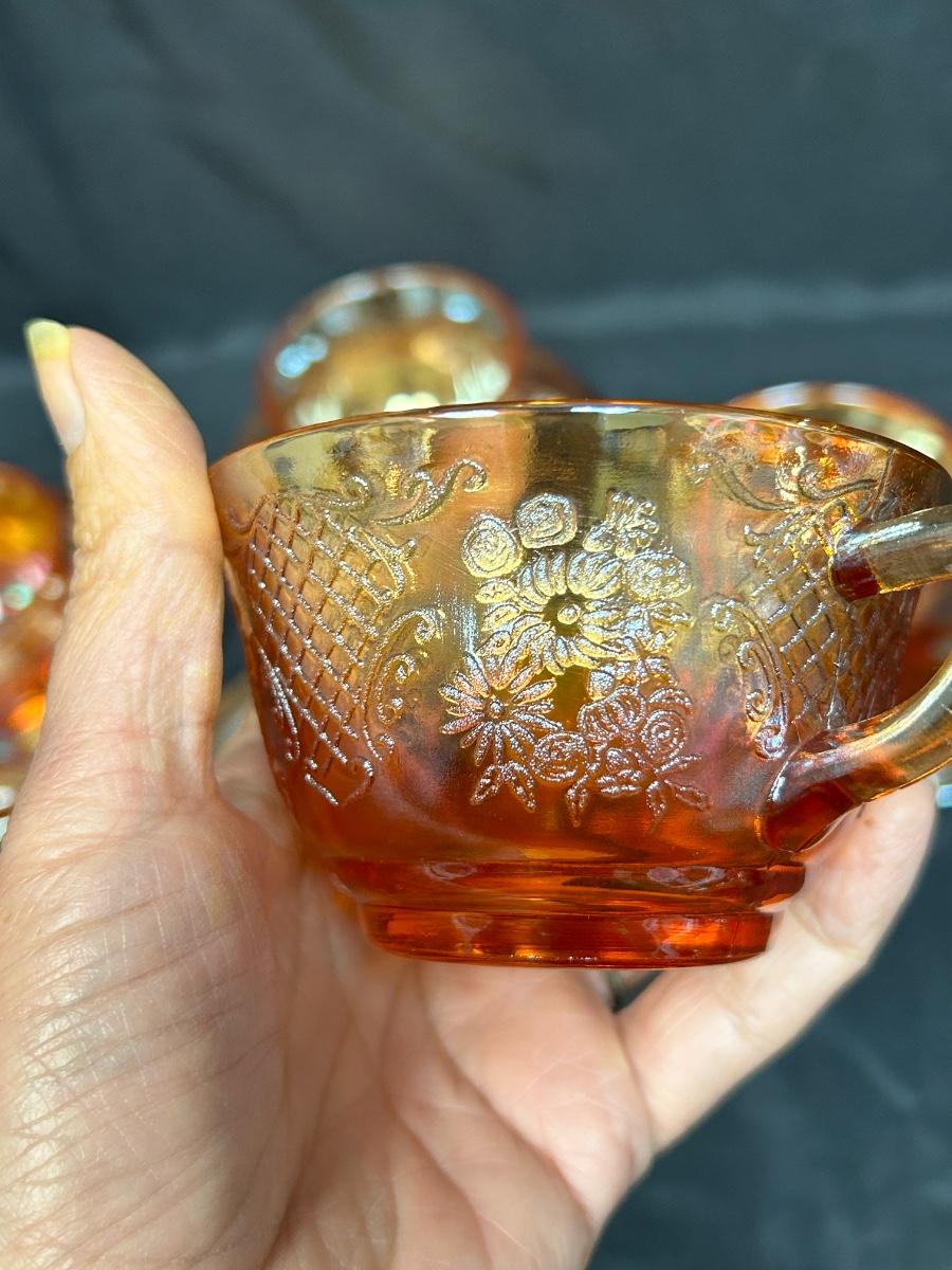 Vintage Normandie by Federal Glass Marigold Carnival Iridescent Teacup and Saucer Set