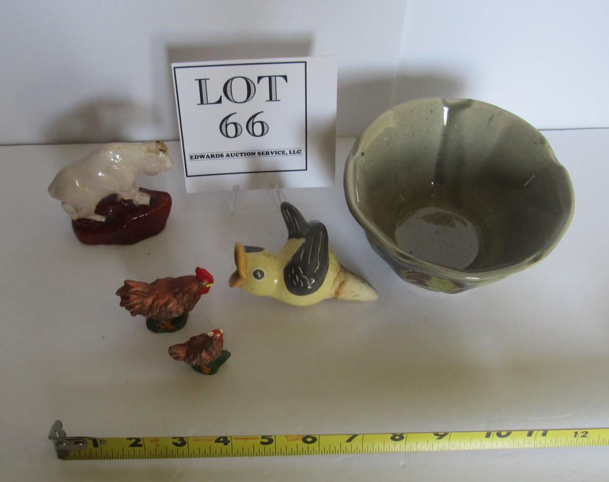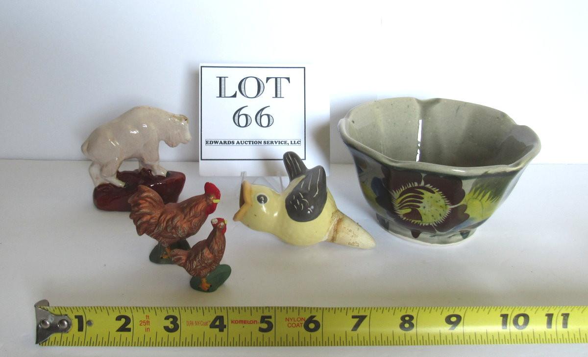 Misc Lot of Pottery: Bowl, Water Bird, Animals