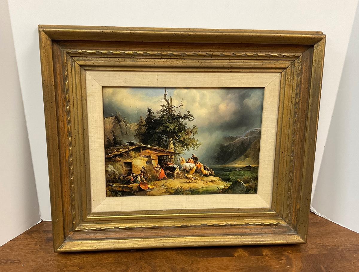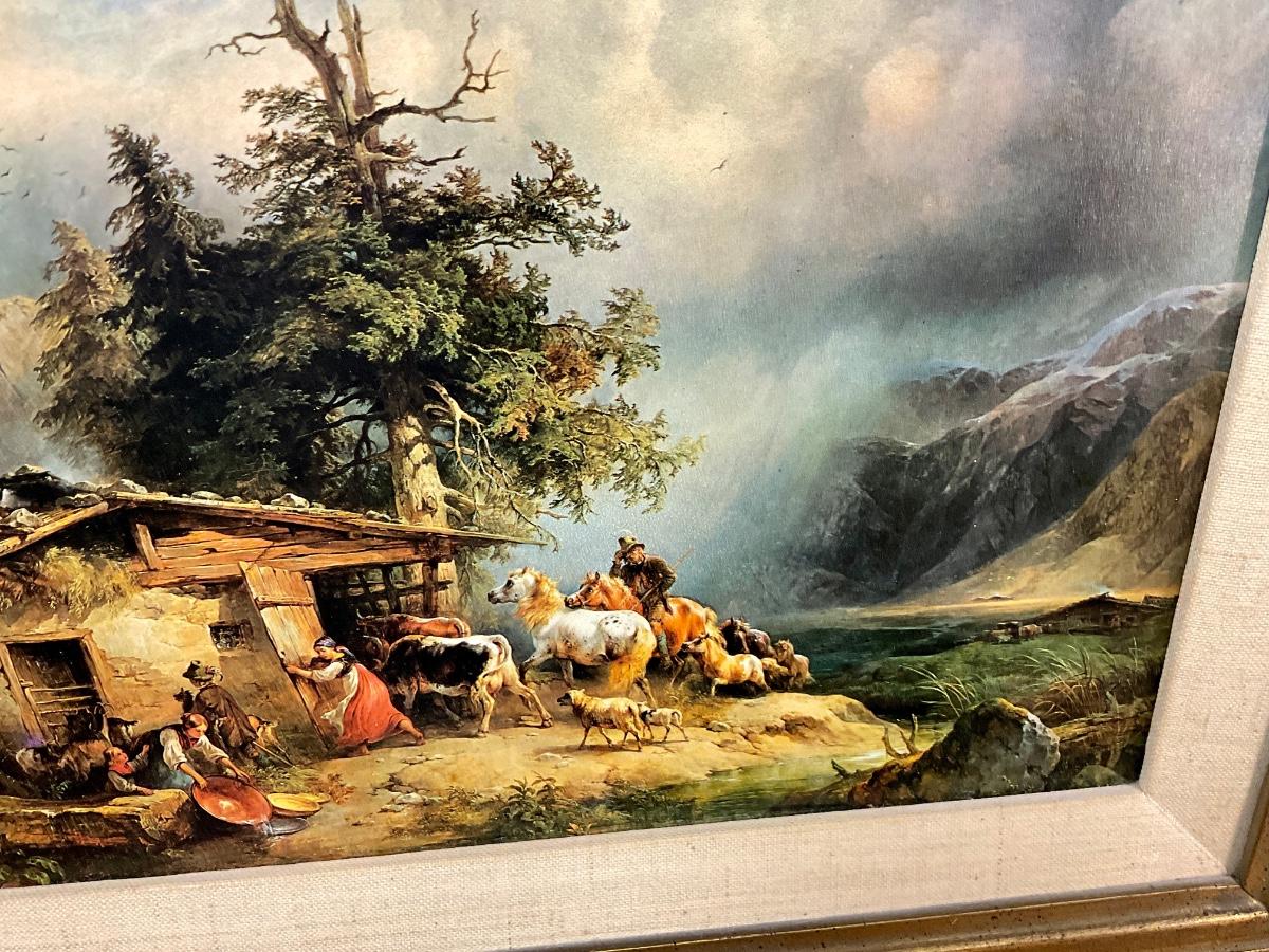 Friedrich Gauermann Framed Art Print Farm in the Mountains. In good condition. About 19" size.