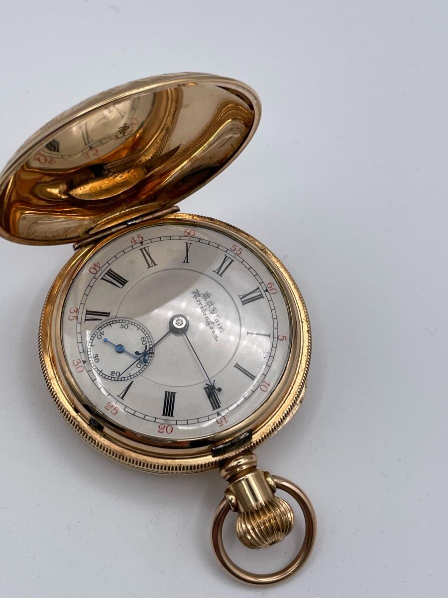 Columbia Watch Co - Gold Tone - Watch Number (138781) - Adjusted - Size 18S - with Gold Filled Case Number Dueber (1556408). Condition - Winder & watch are in working order. This is not a guarantee that all parts are original nor is the watch autheniticated. Year 1896.