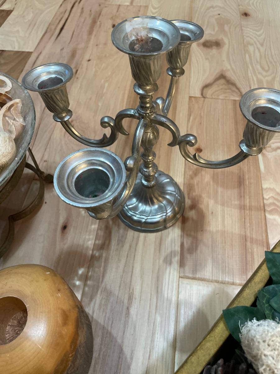 W. German candleabra and wood candle holder