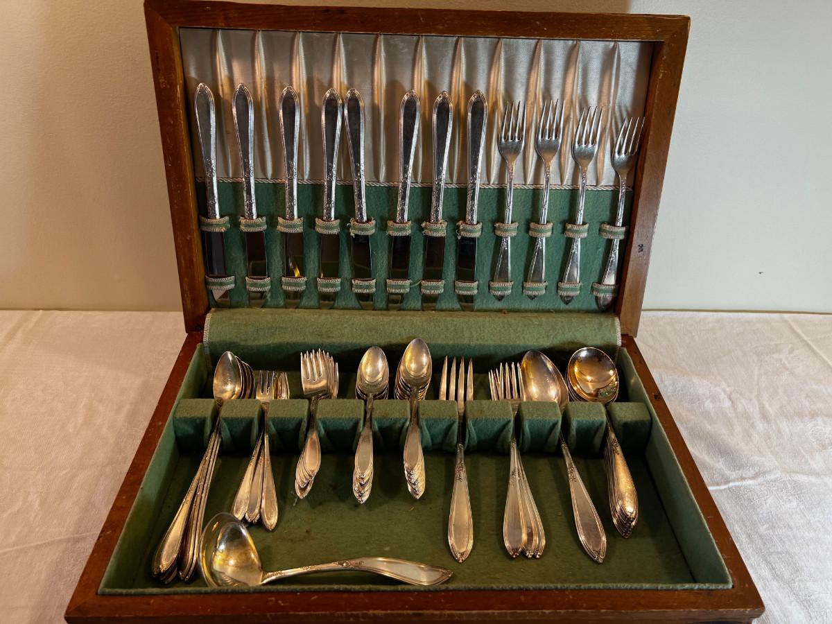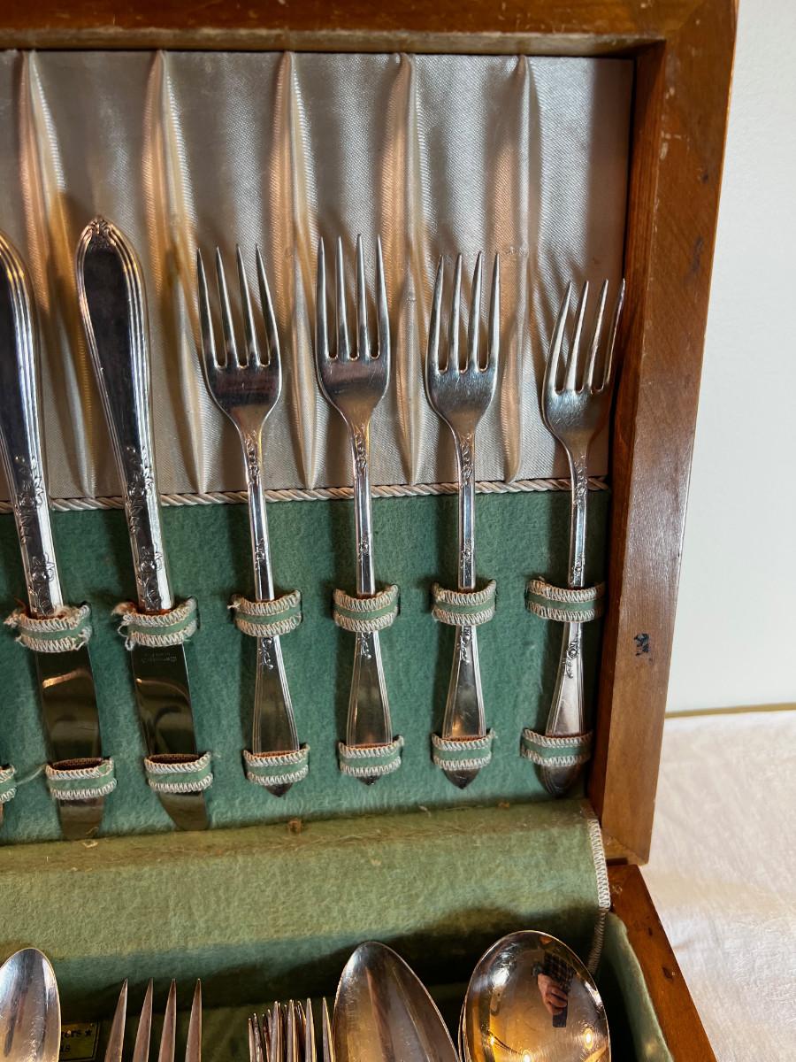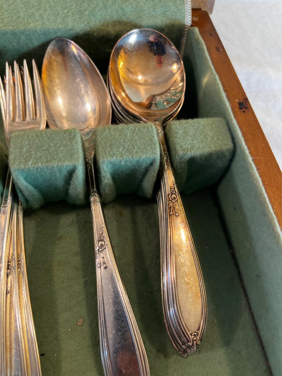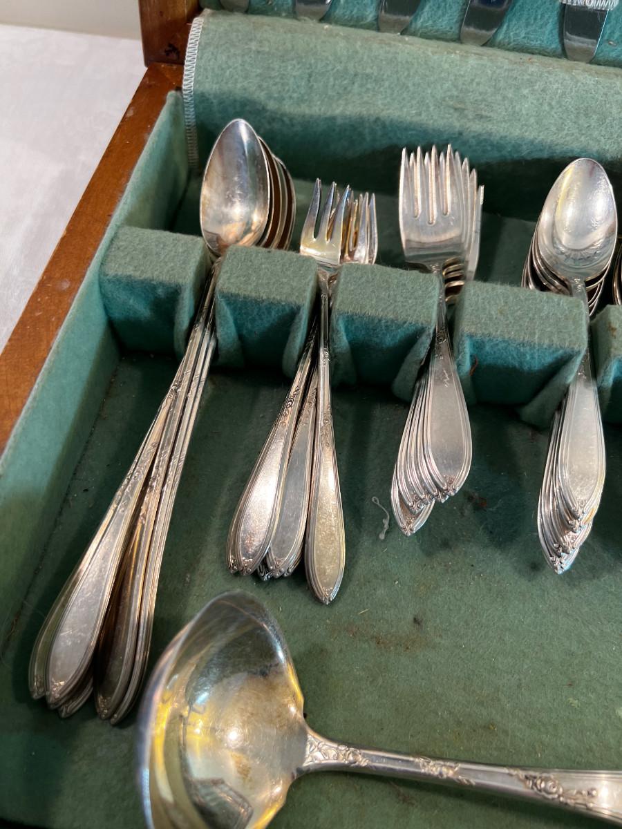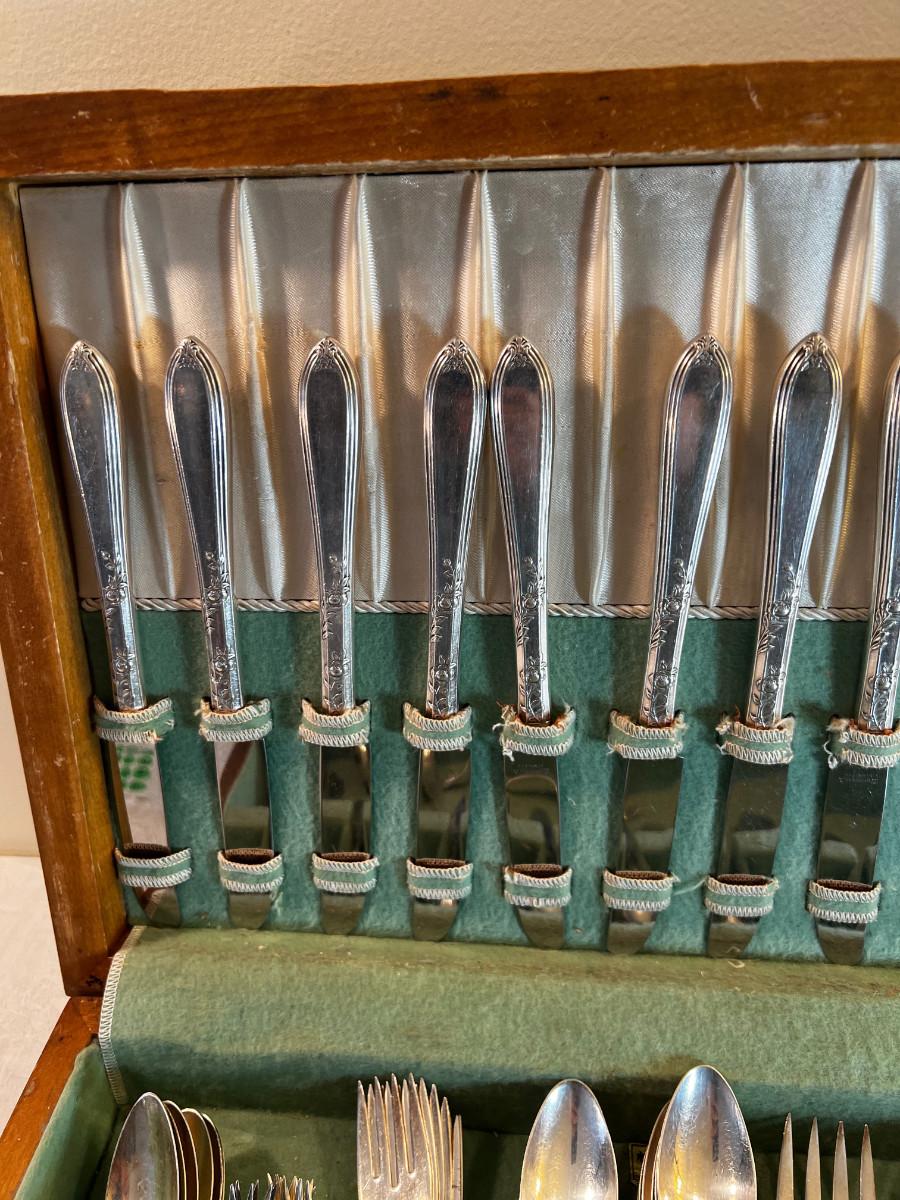 Service for 8. With a Rose Pattern comes with a storage box too,