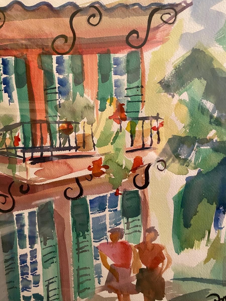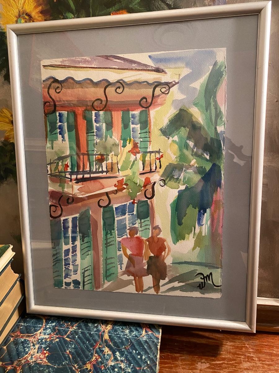 Watercolor depicting New Orleans street by William McInnes. Framed and matted, 19x15
