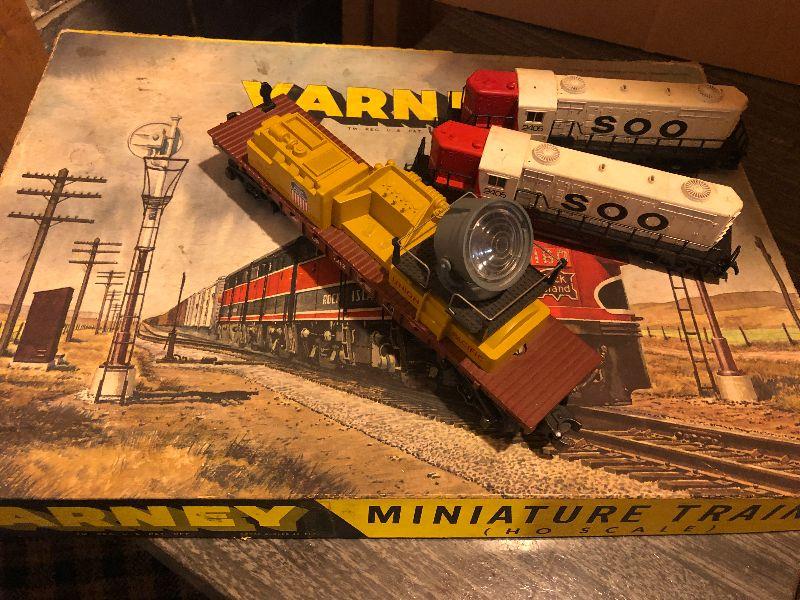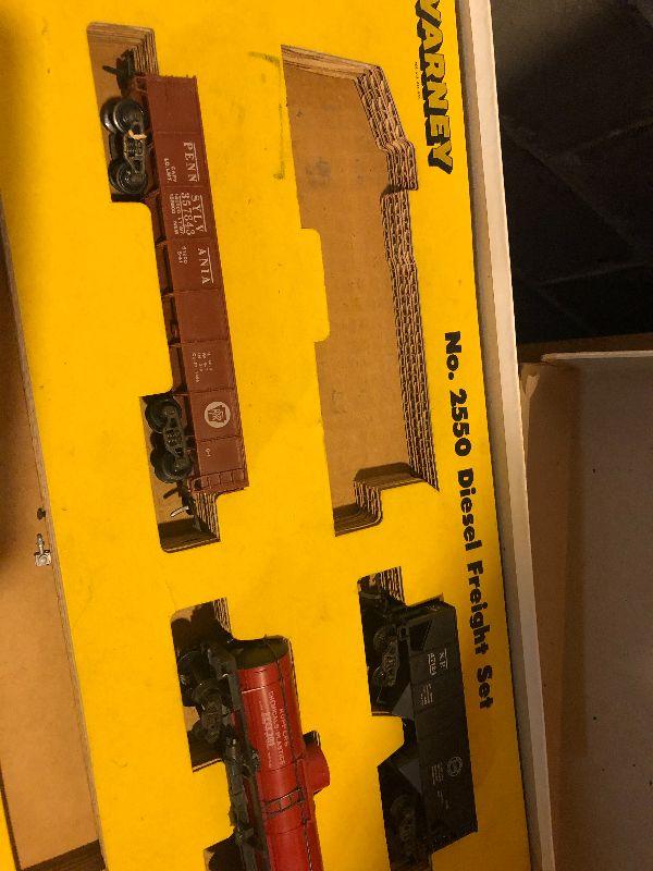 This is a random lot of trains. The Varney Box would be so cool framed, it does include a couple of cars but is not complete. Please see pics for exact content of this lot, condition of the items, and sizes if needed. Thank you for looking and have fun bidding.