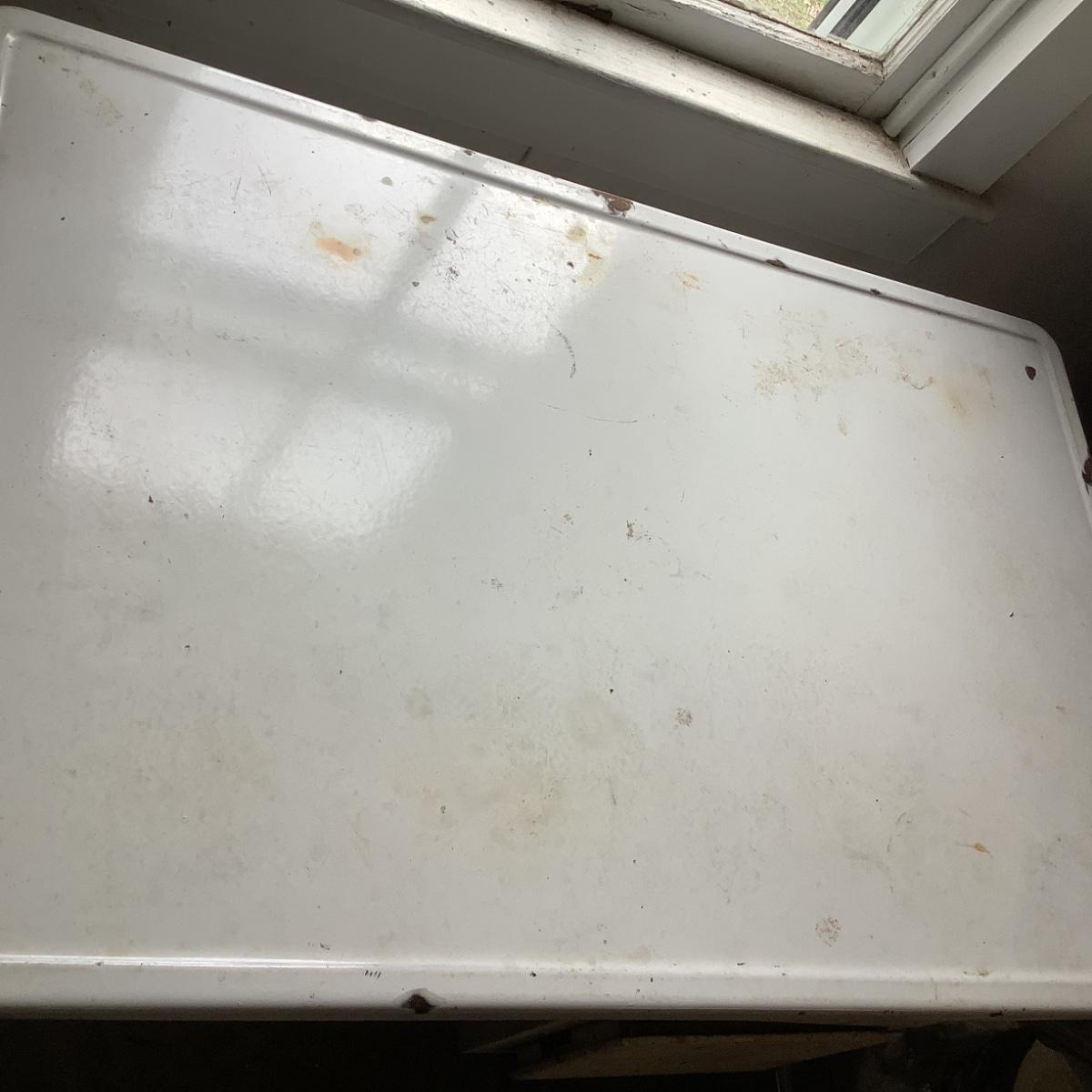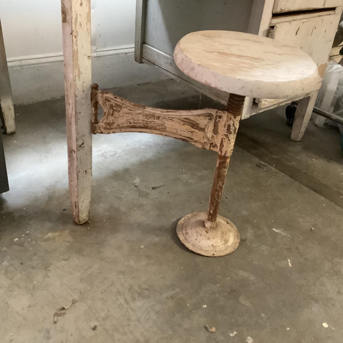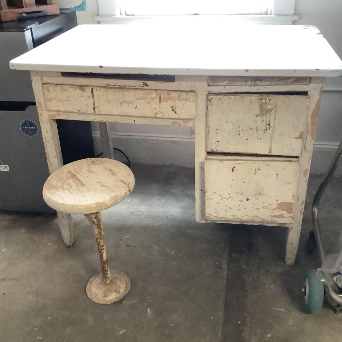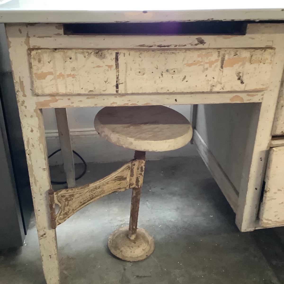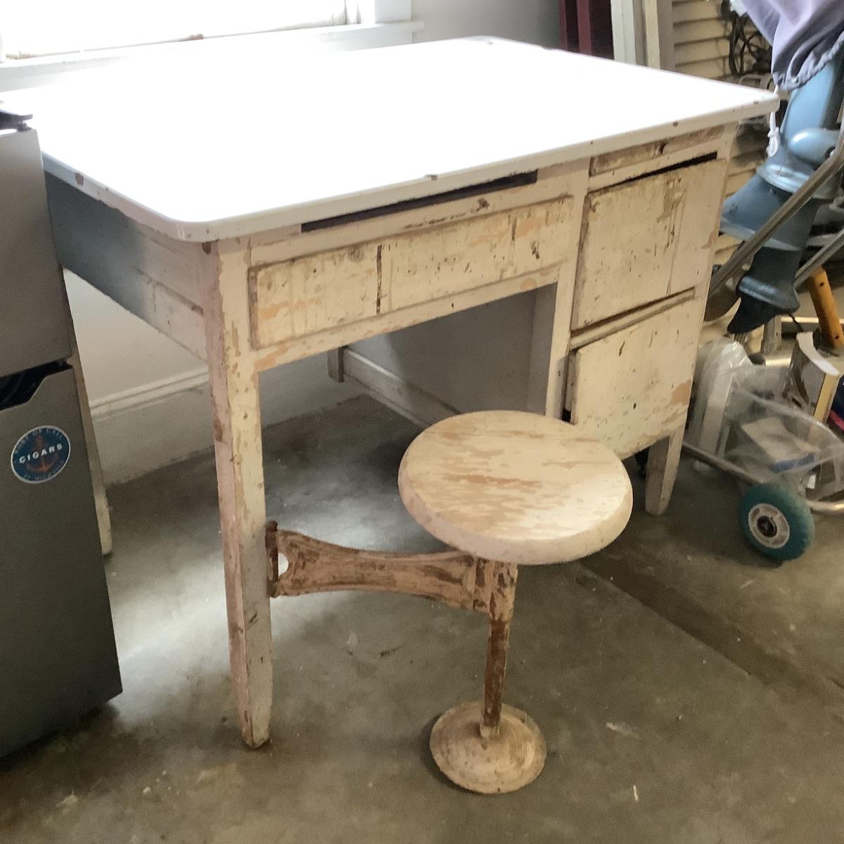 W1300 Vintage 1930's Enamel Top Work Table with Swing Stool