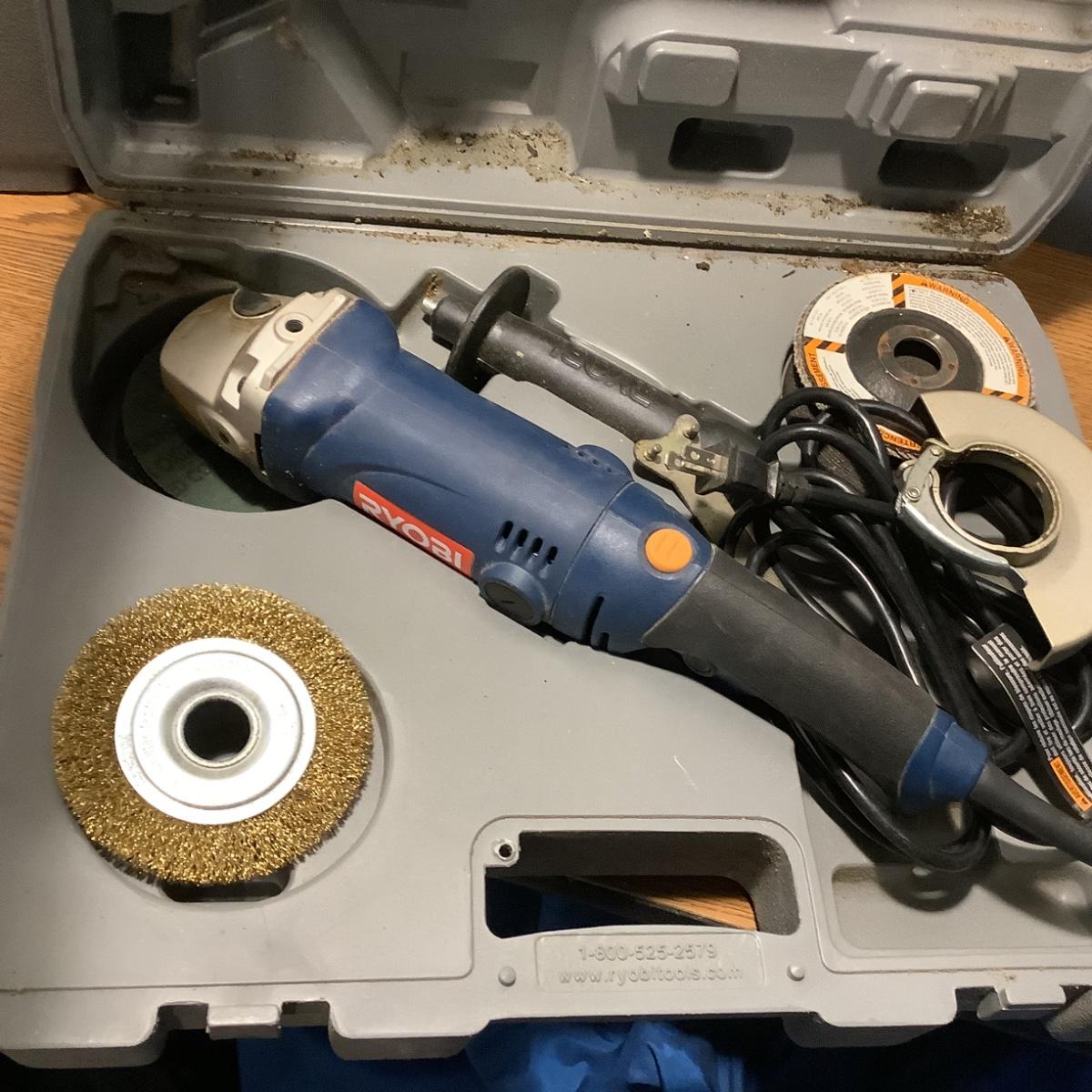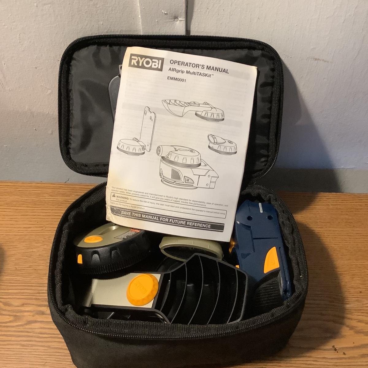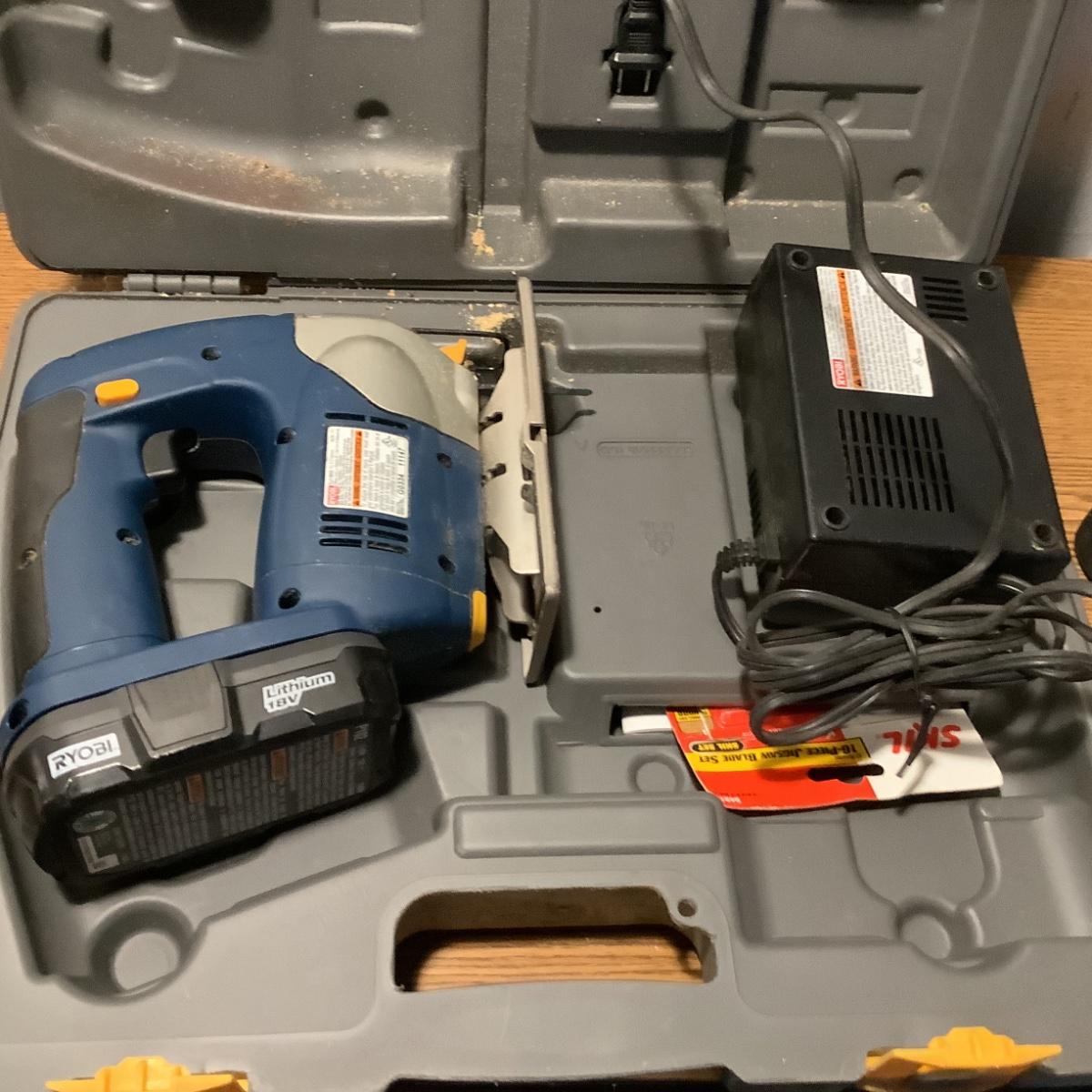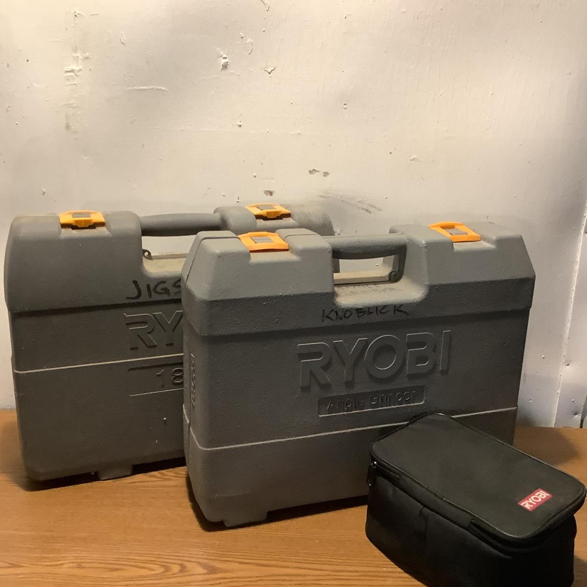 Lot contains-RYOBI Jigsaw 18V, RYOBI Angle grinder, Ryobi air grip multitask kit.
