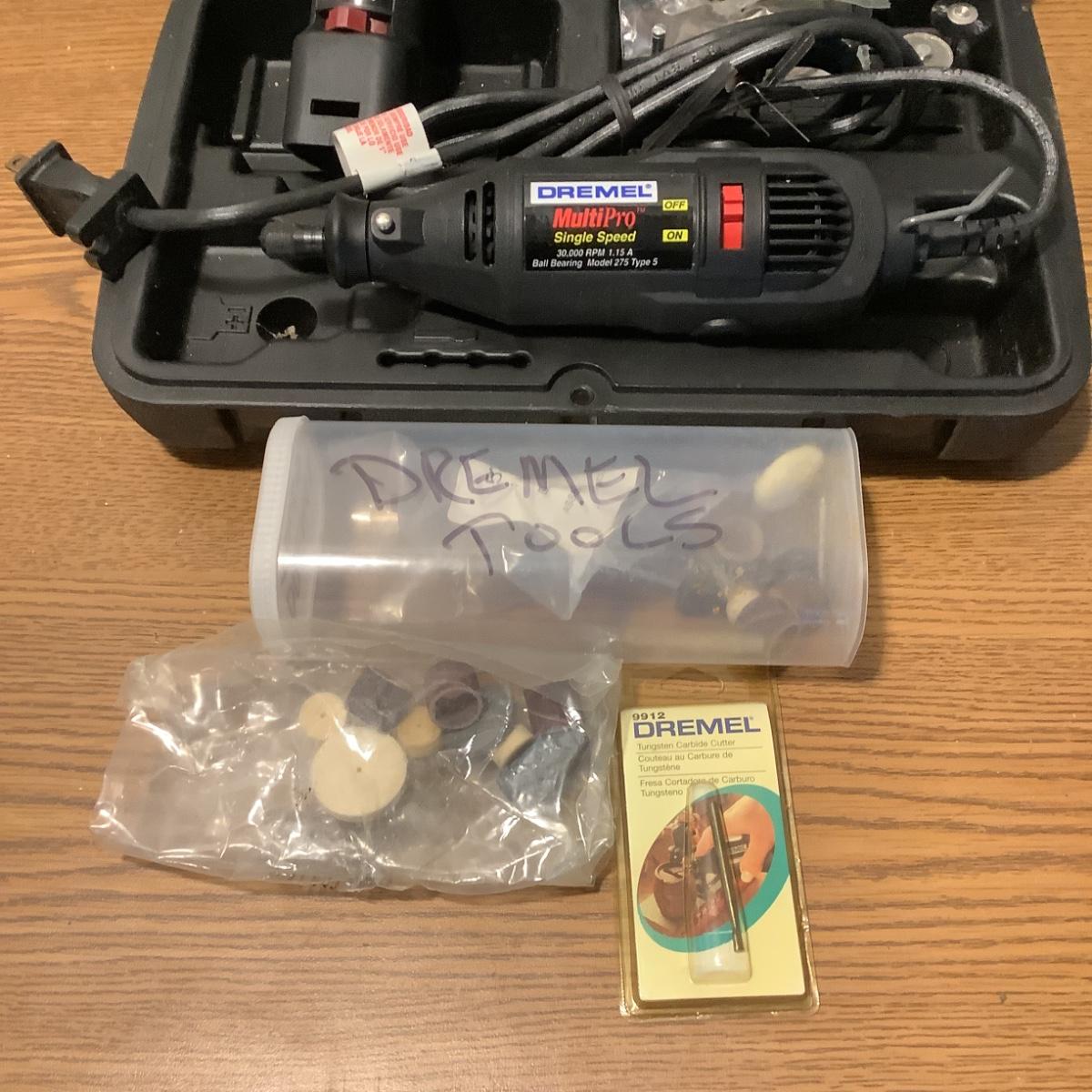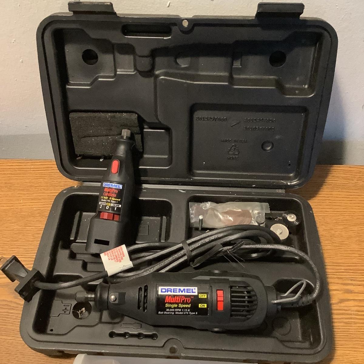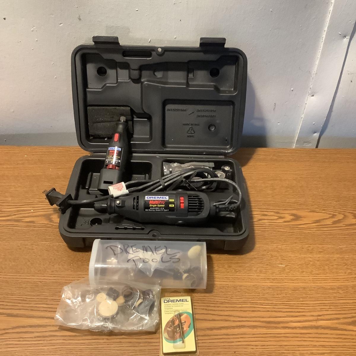 Dremel multi-pro single speed and multi-pro cordless with assorted attachments.