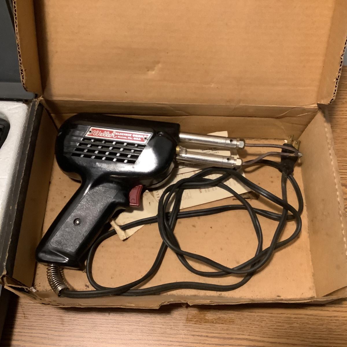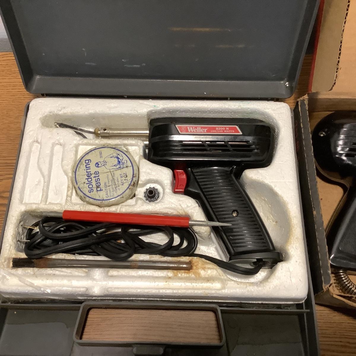 There is one vintage Weller Soldering iron in a box, a Weller soldering iron in a hard case.