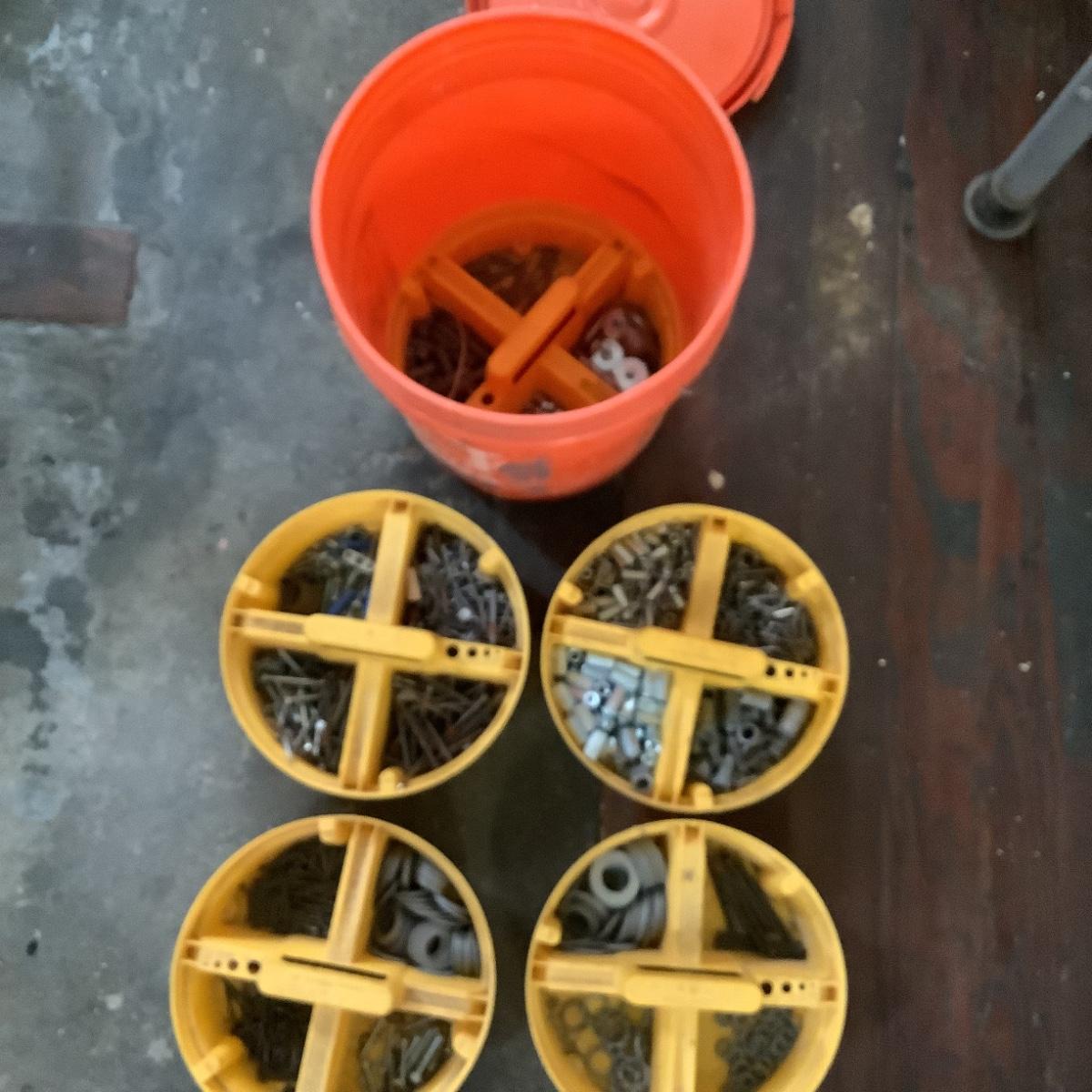 There are 5 bucket boss stackers for a 5 gallon bucket, including nuts, bolts, washers etc.