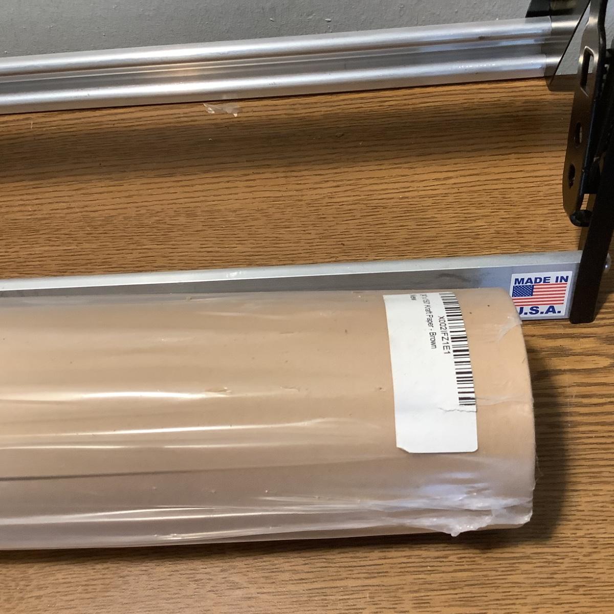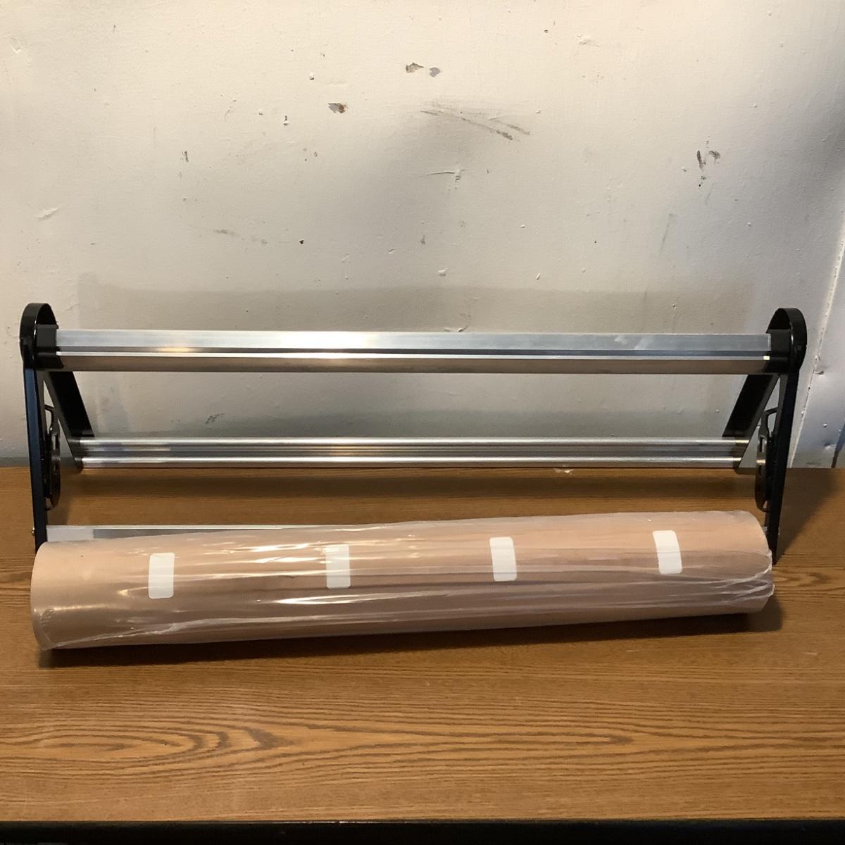 The rack/paper holder is brand new, and the brown craft paper (perfect for a crab feast) is new and measures 24" x 150".