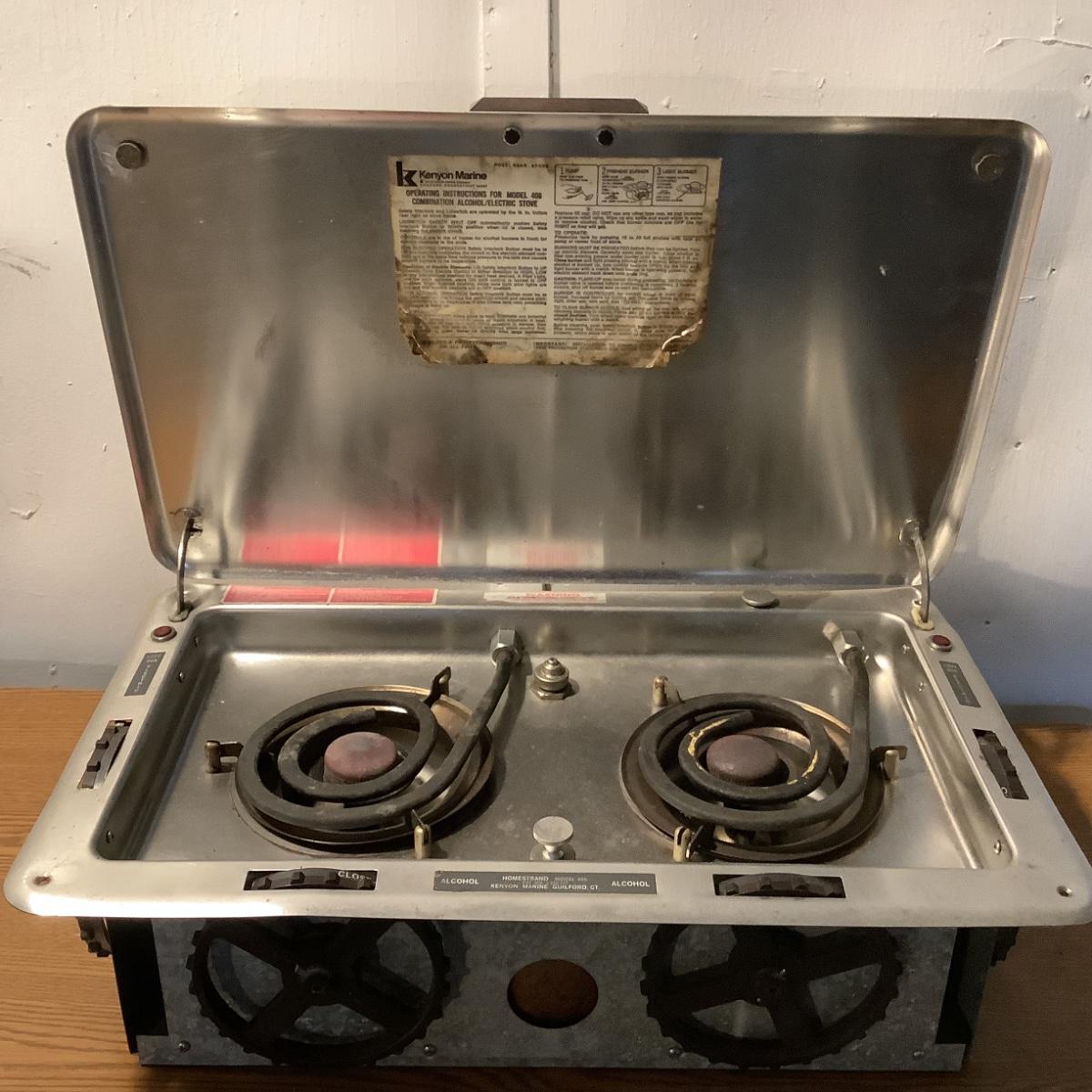 The stove is a 2 burner and made by Kenyon, has not been tested.