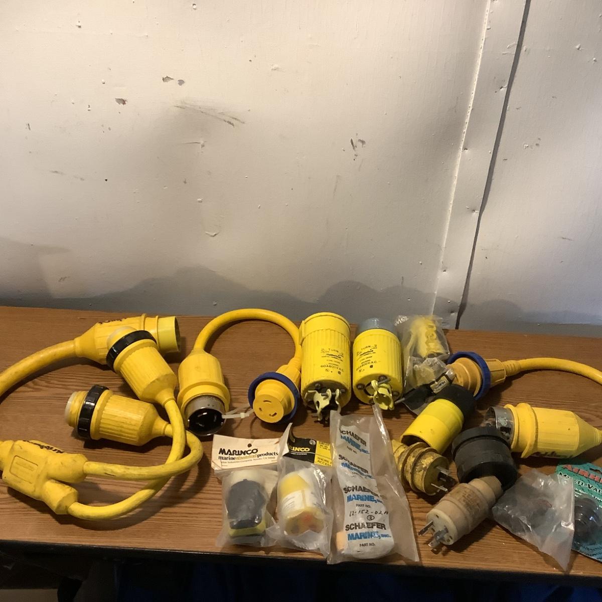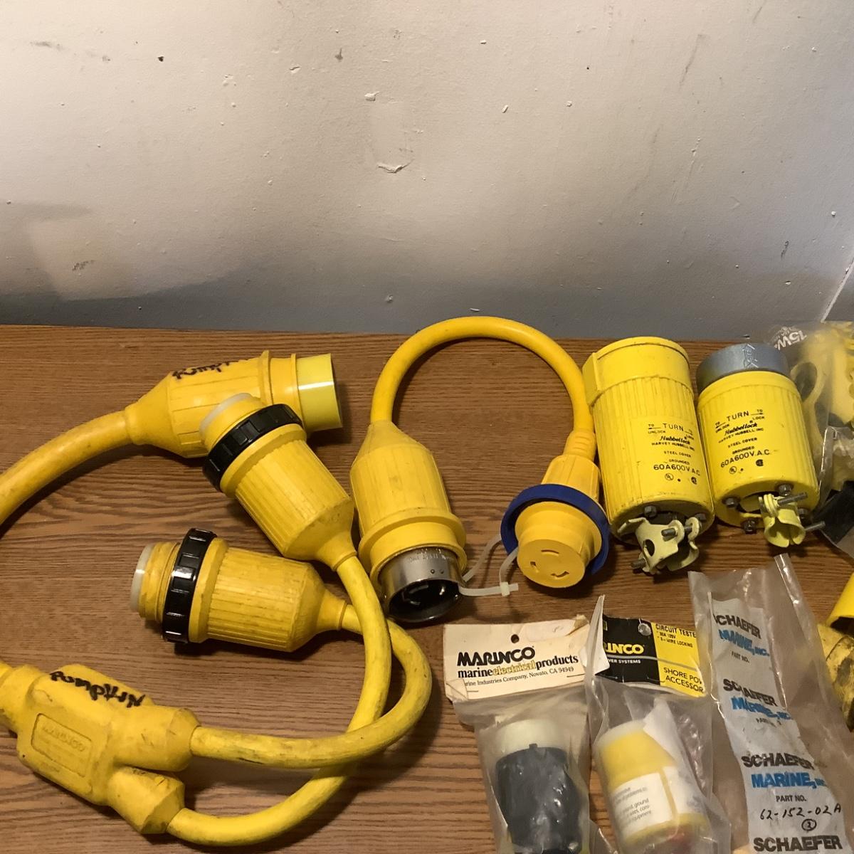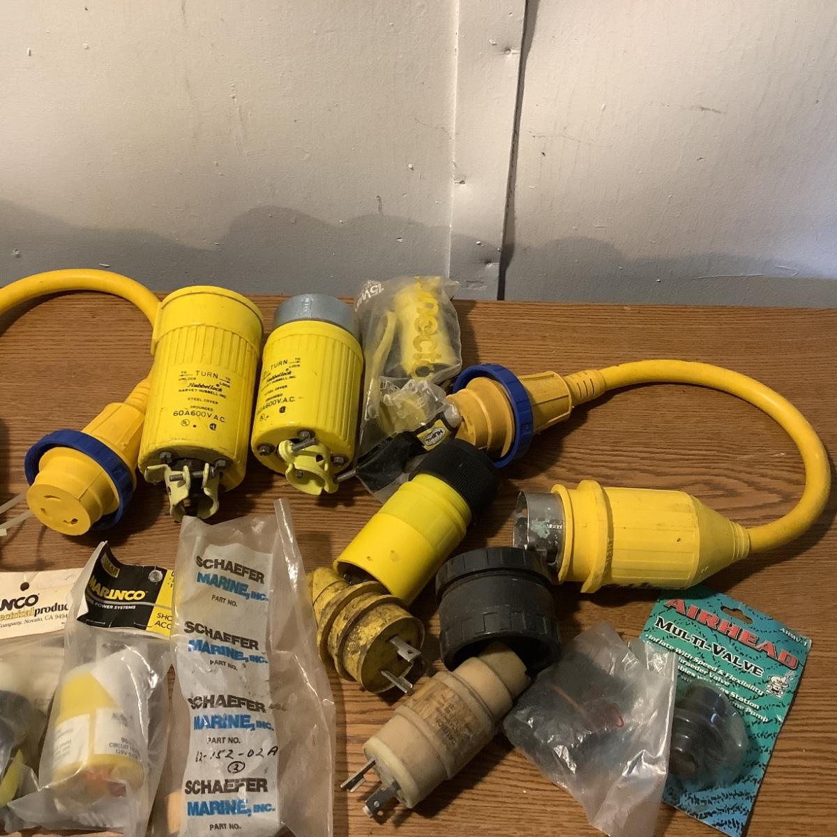 Assorted Marinco 600v, assorted plugs, cords, etc.