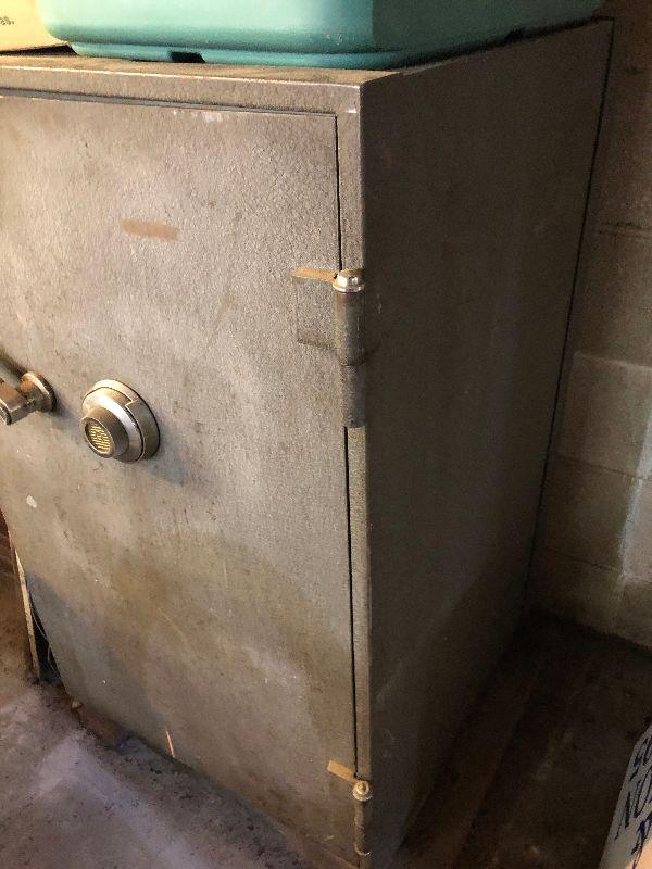 Have combo. Is quite heavy, but must be brought up basement ramp and one step. BRING HELP!! This is an awesome treasure to have in your home to use as display cabinet or bar, or as a safe! Contents not included. Please see all pictures for contents of the lot, the condition of items in the lot, and measurements of the items if taken. Thank you for looking and have fun bidding.