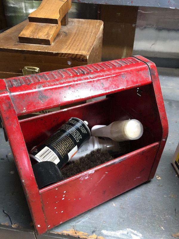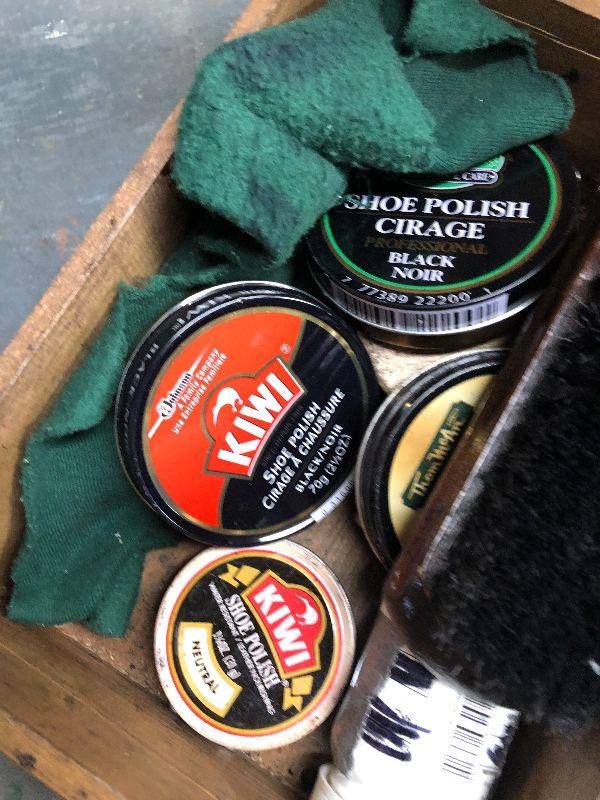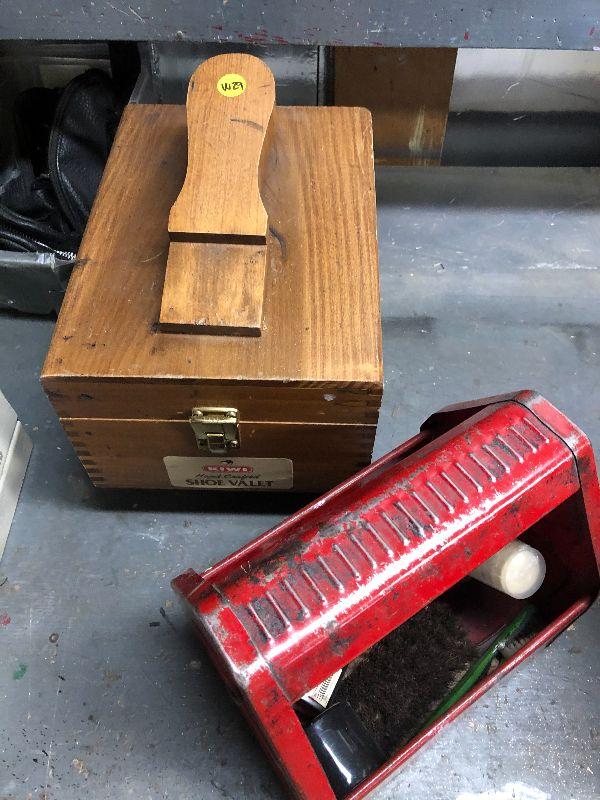 W29: Pair of Shoe Shine Kits - Metal and Wood