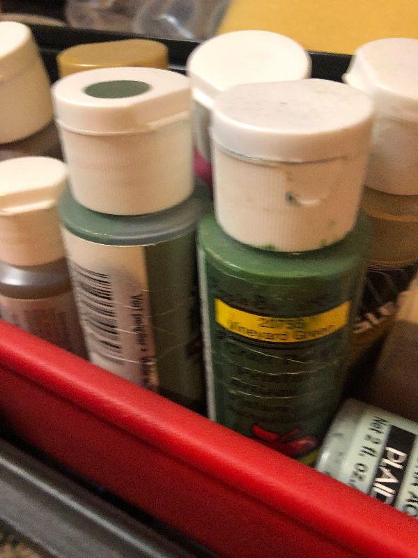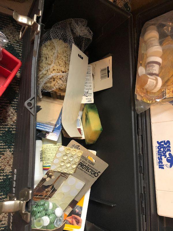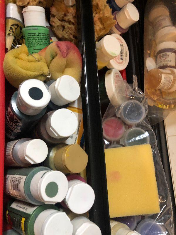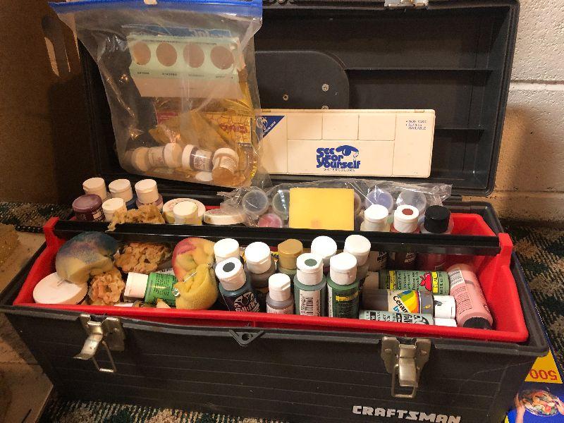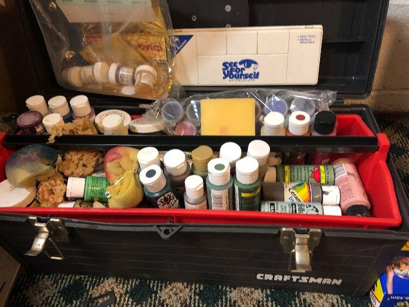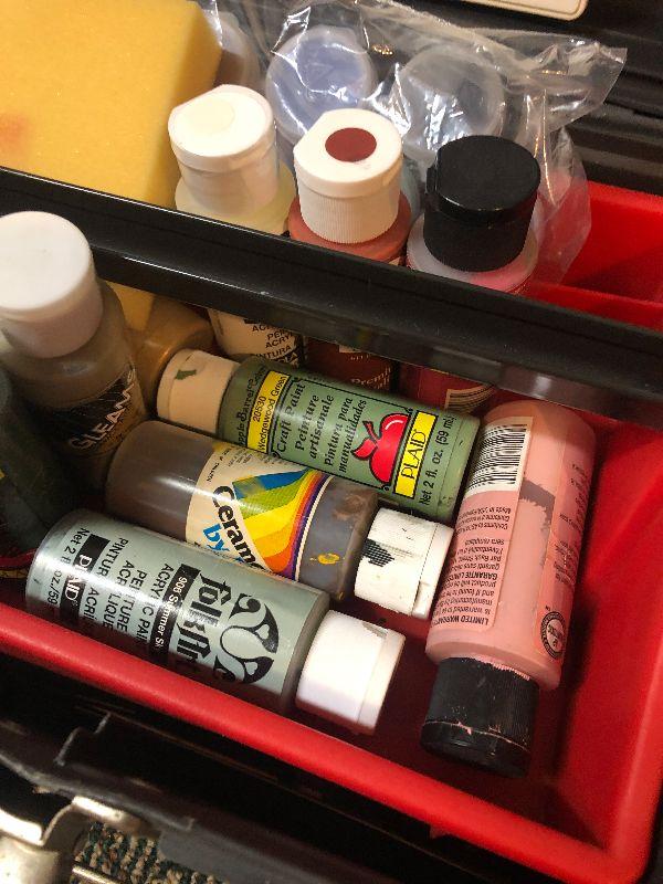 Craftsman Toolbox with various crafting paints. Please see pics for exact content of this lot, condition of the items, and sizes if needed. Thank you for looking and have fun bidding.