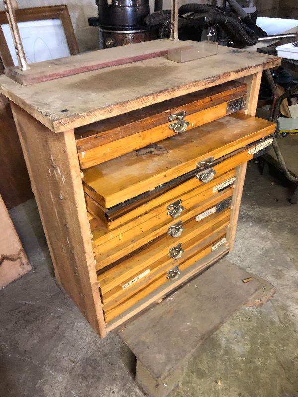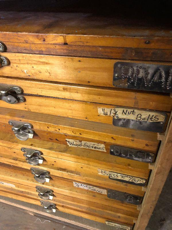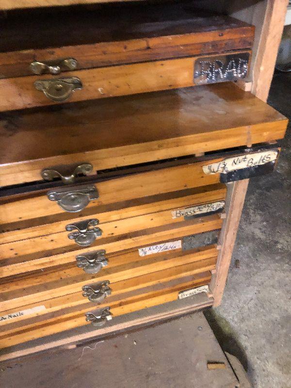 Handmade Oak Tool chest with removable drawers to store all your fastenings and tools. Comes complete.