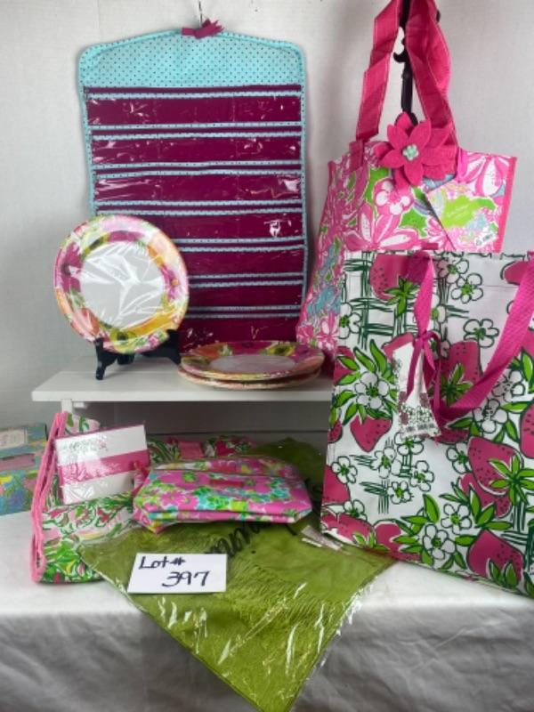 Gift Totes, x 3 , make up cases, pashmina , paper, decorative box, umbrella , and much more
