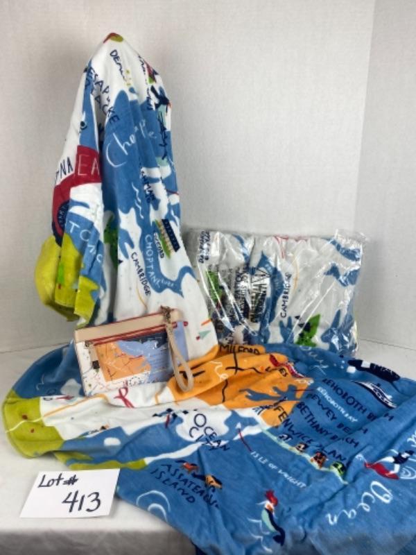Spartina two piece local beach towel set with matching clutch purse/wallet