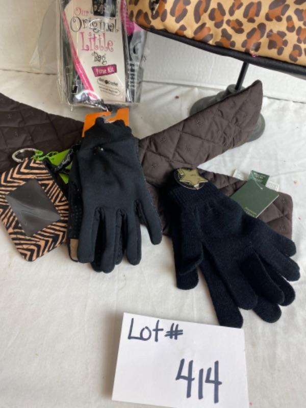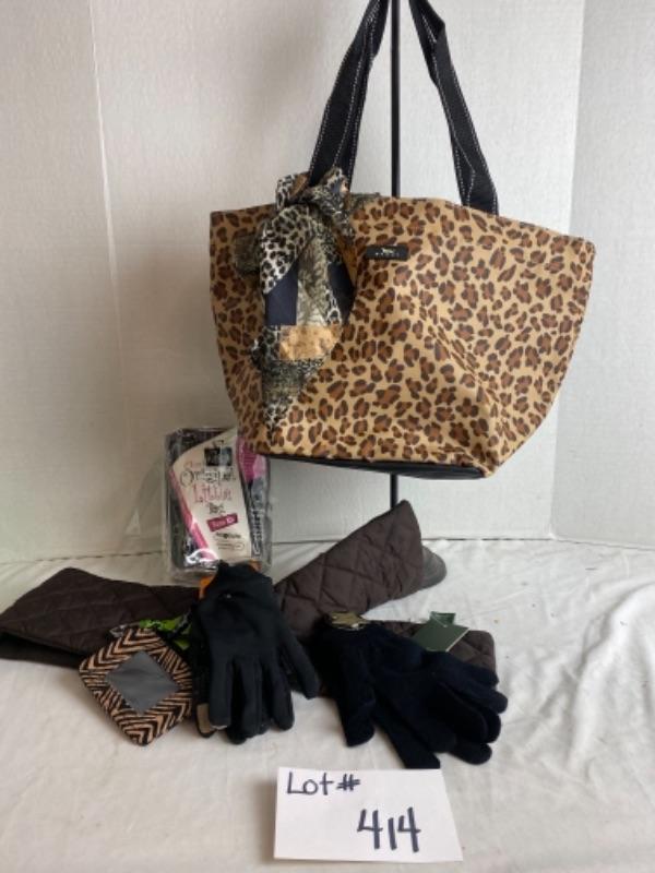 SCOUT leopard print bag gift lot with gloves, scarf, L.L. Bean quilted scarf, cotton gloves, vera Bradley striped key fob and much more