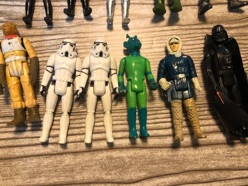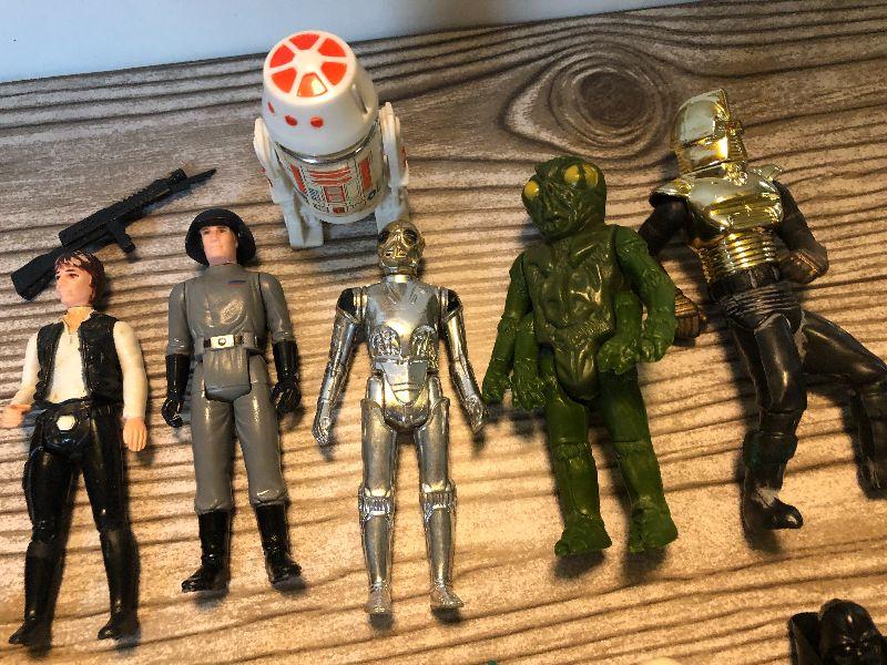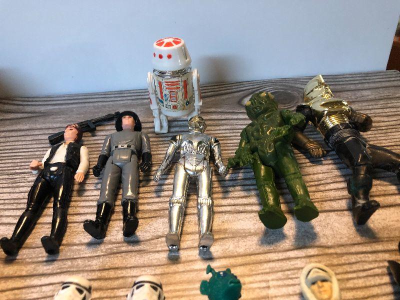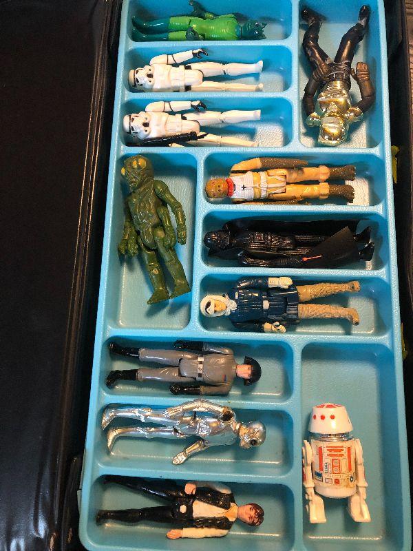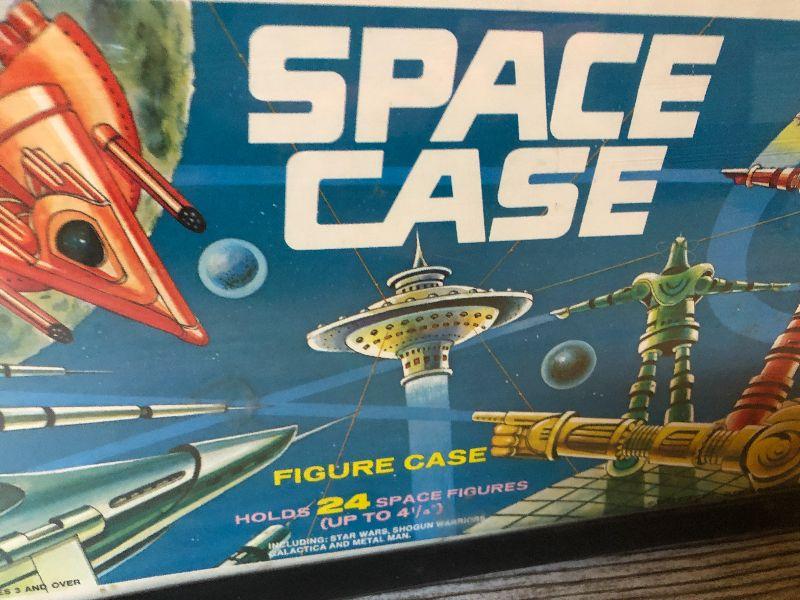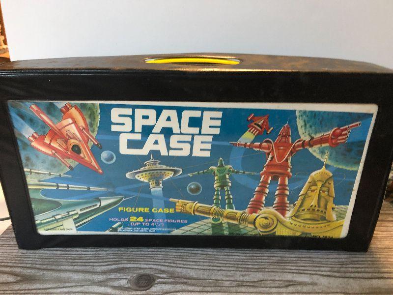 This is a fun lot of vintage toys. Most of the action figures are marked made in Hong Kong. Case is vintage also. Please see pics for exact content of this lot, condition of the items, and sizes if needed. Thank you for looking and have fun bidding.