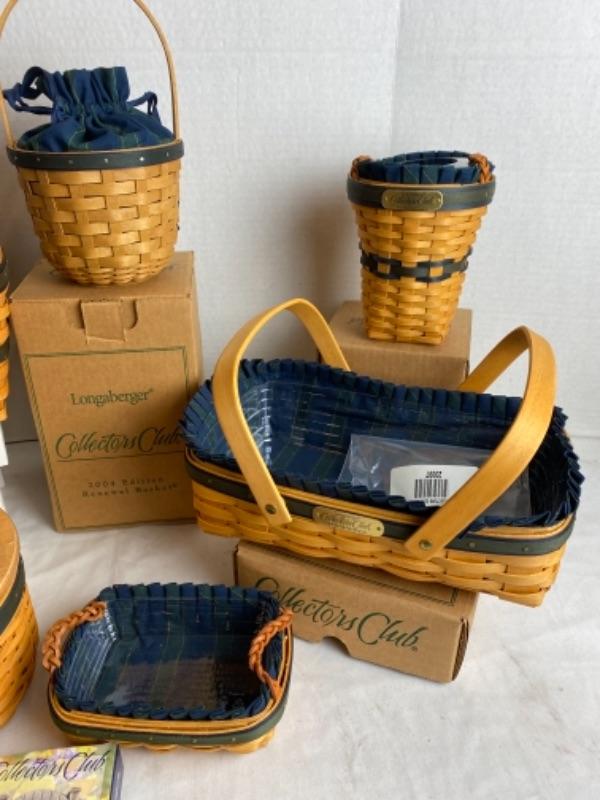 Longaberger collectors club basket set. 6 baskets that are new in box with liners and protectors