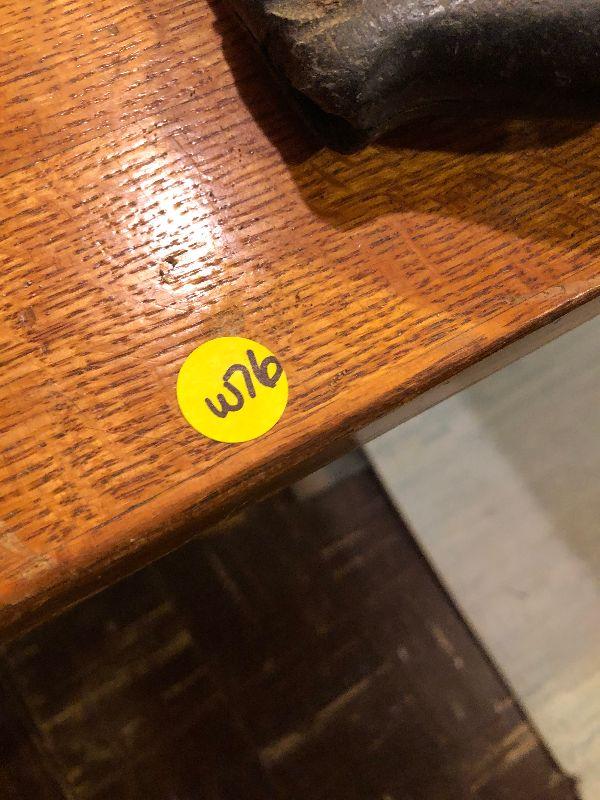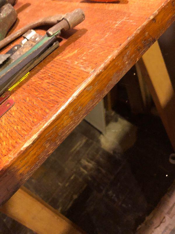 Place on any base. This baby is solid wood, and beautifully distressed. Can be used for a variety of uses. Possibly came from a school's workshop.