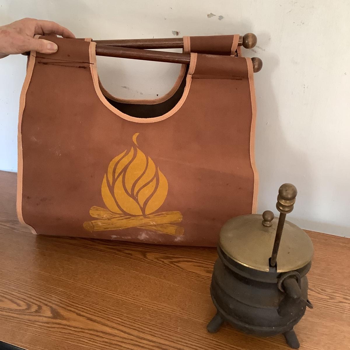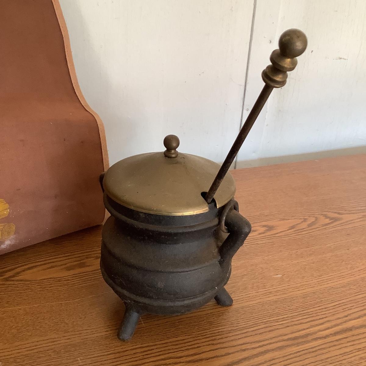 W776 Vintage Cast Iron & Brass Fire Starter and Log Holder