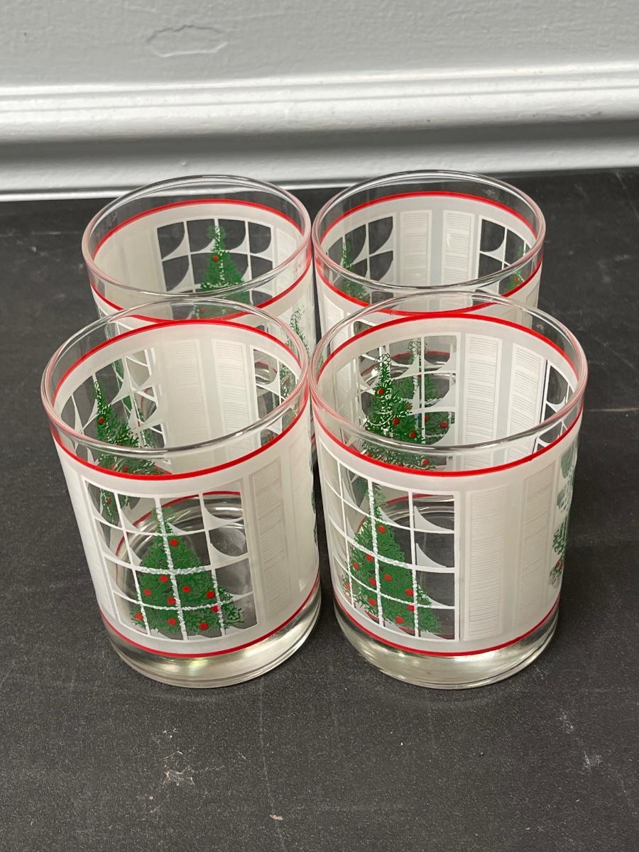Waechtersbach CHRISTMAS TREE Double Old Fashion FROSTED WINDOW SET OF FOUR