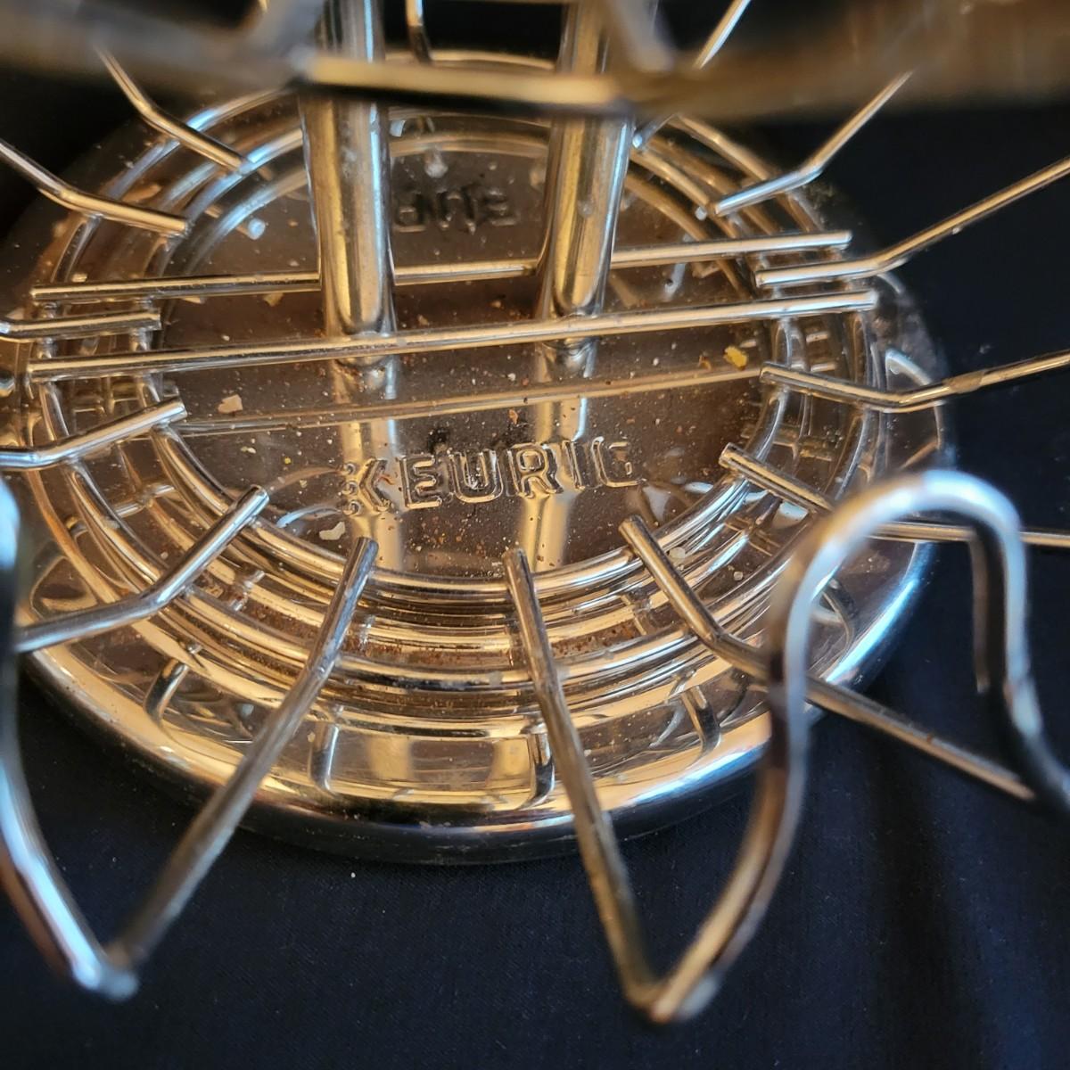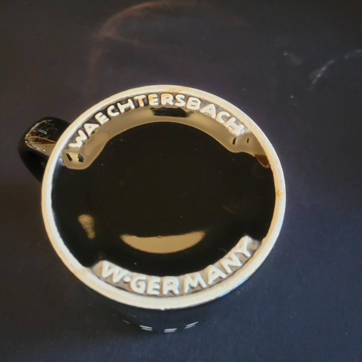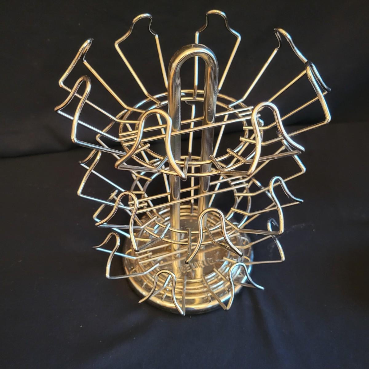 A collection of five Waechtersbach ceramic coffee mugs manufactured in West Germany. This lot also includes a metal Keurig coffee mug stand that can hold up to 24 mugs. Stand measures approximately 8"D x 10"H. Local pickup only